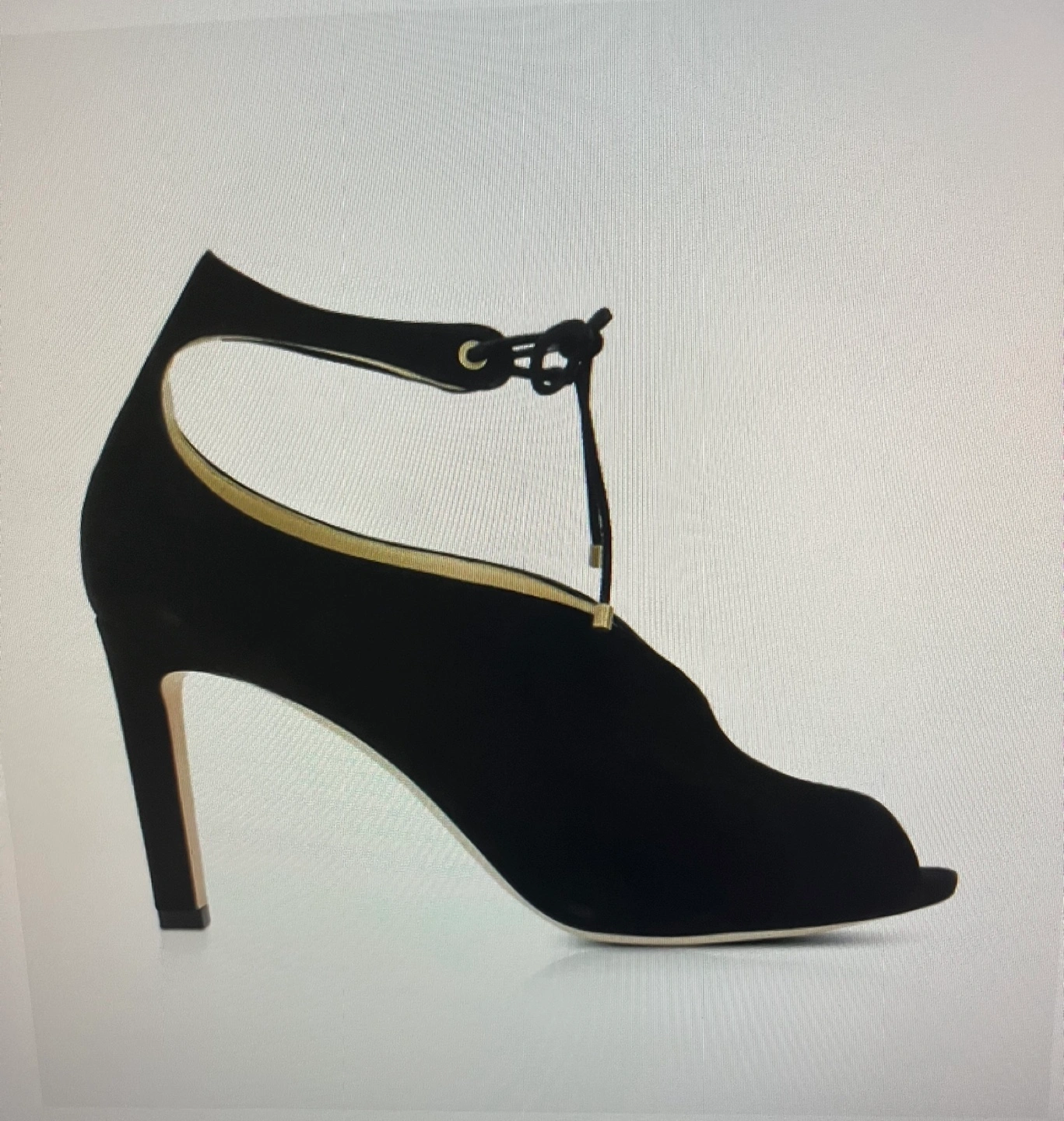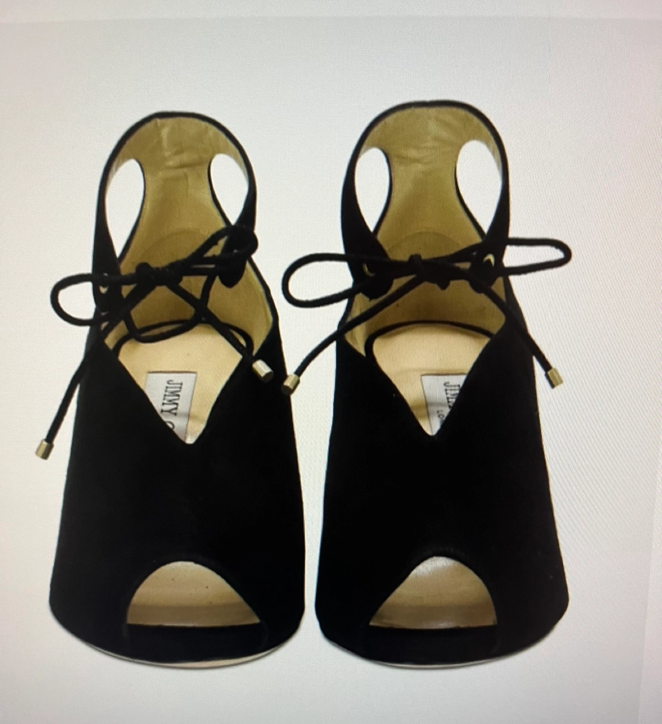 Jimmy Choo Heels in black suede with peep toe, cut out detail and ankle strap. Includes box. Fit a size 7. • Brand = Jimmy Choo • Condition =brand new • Size = 37.5 • Material = Suede •purchased at Holt Renfrew $1.150 plus tax
