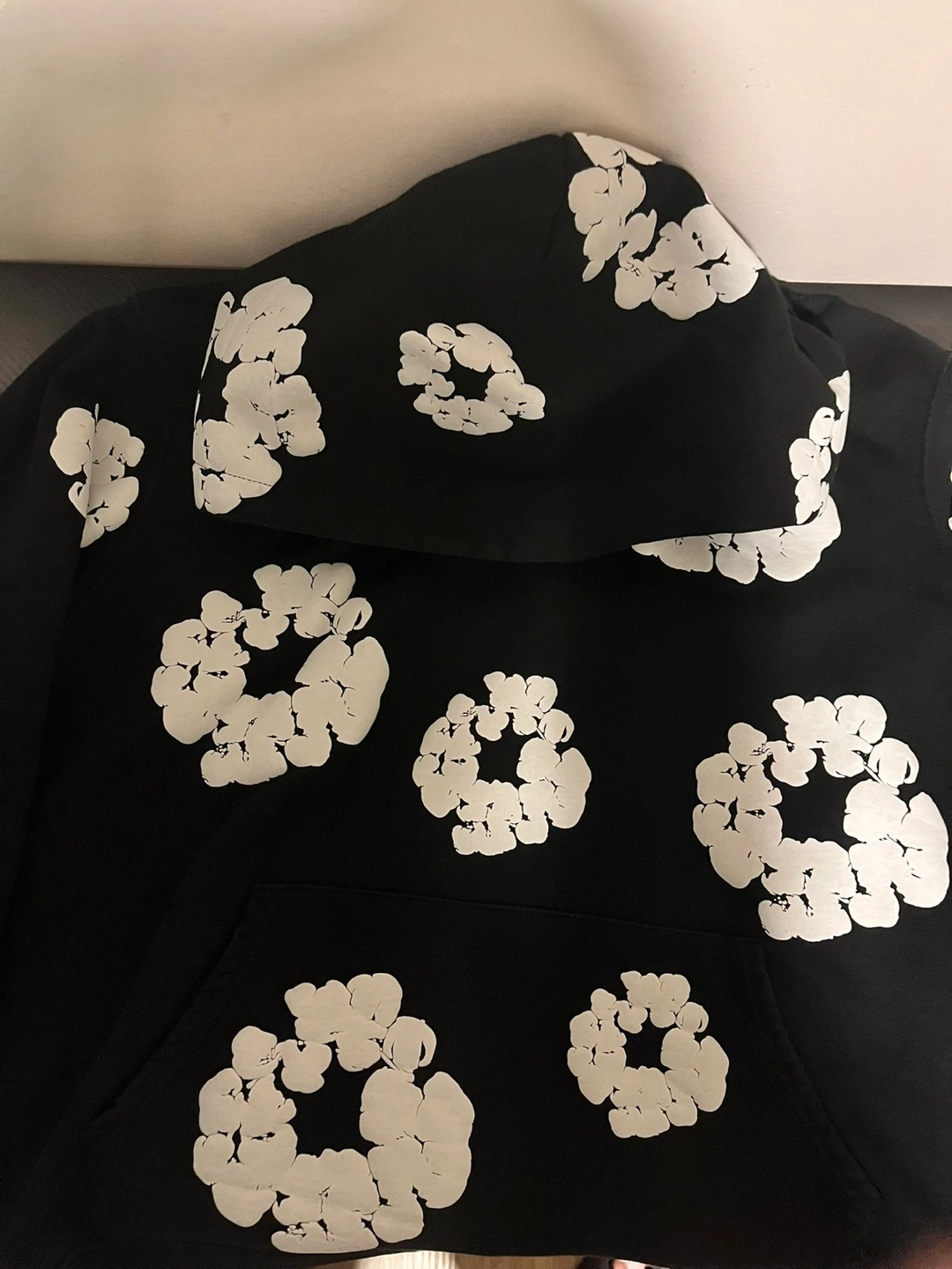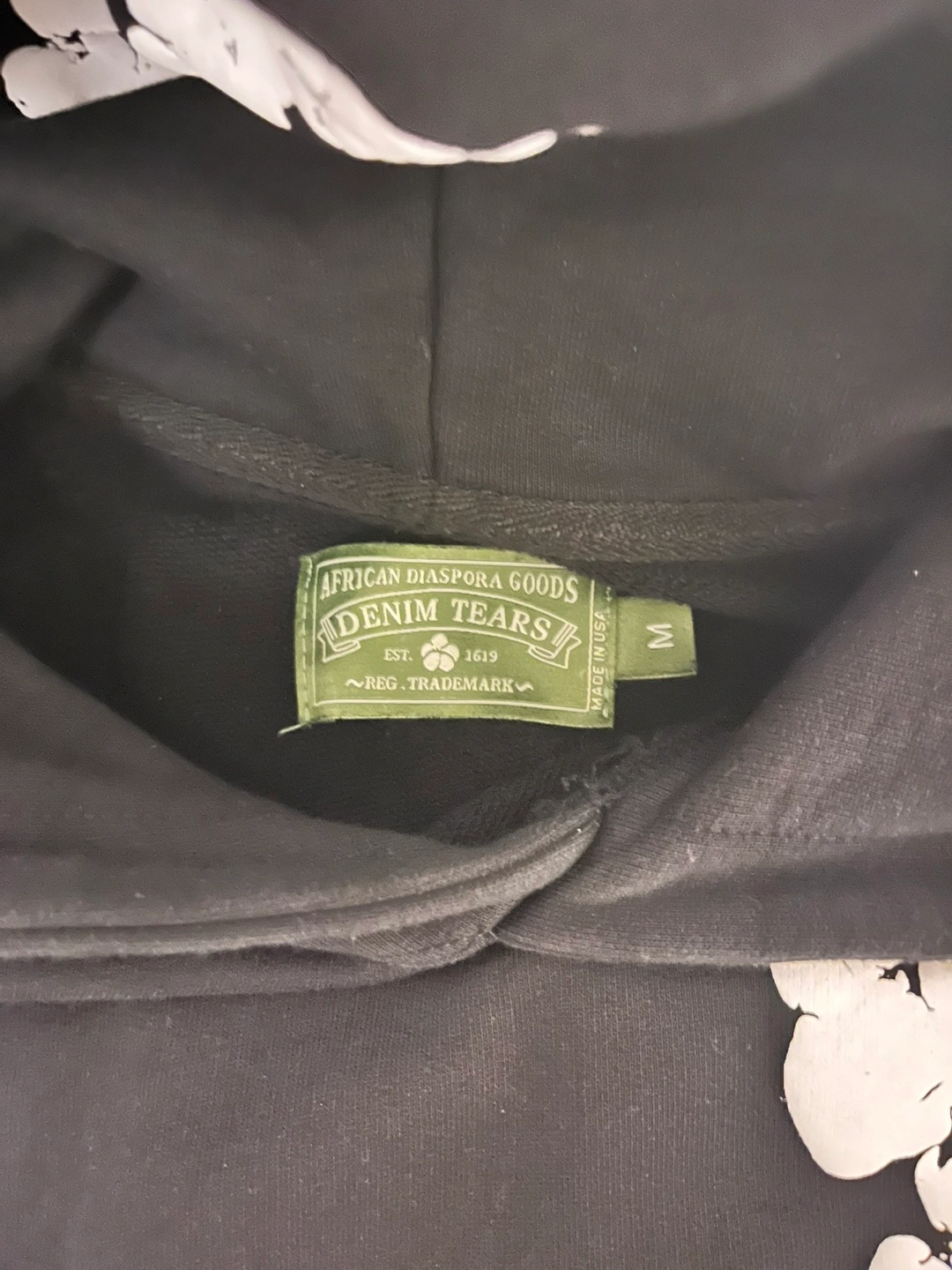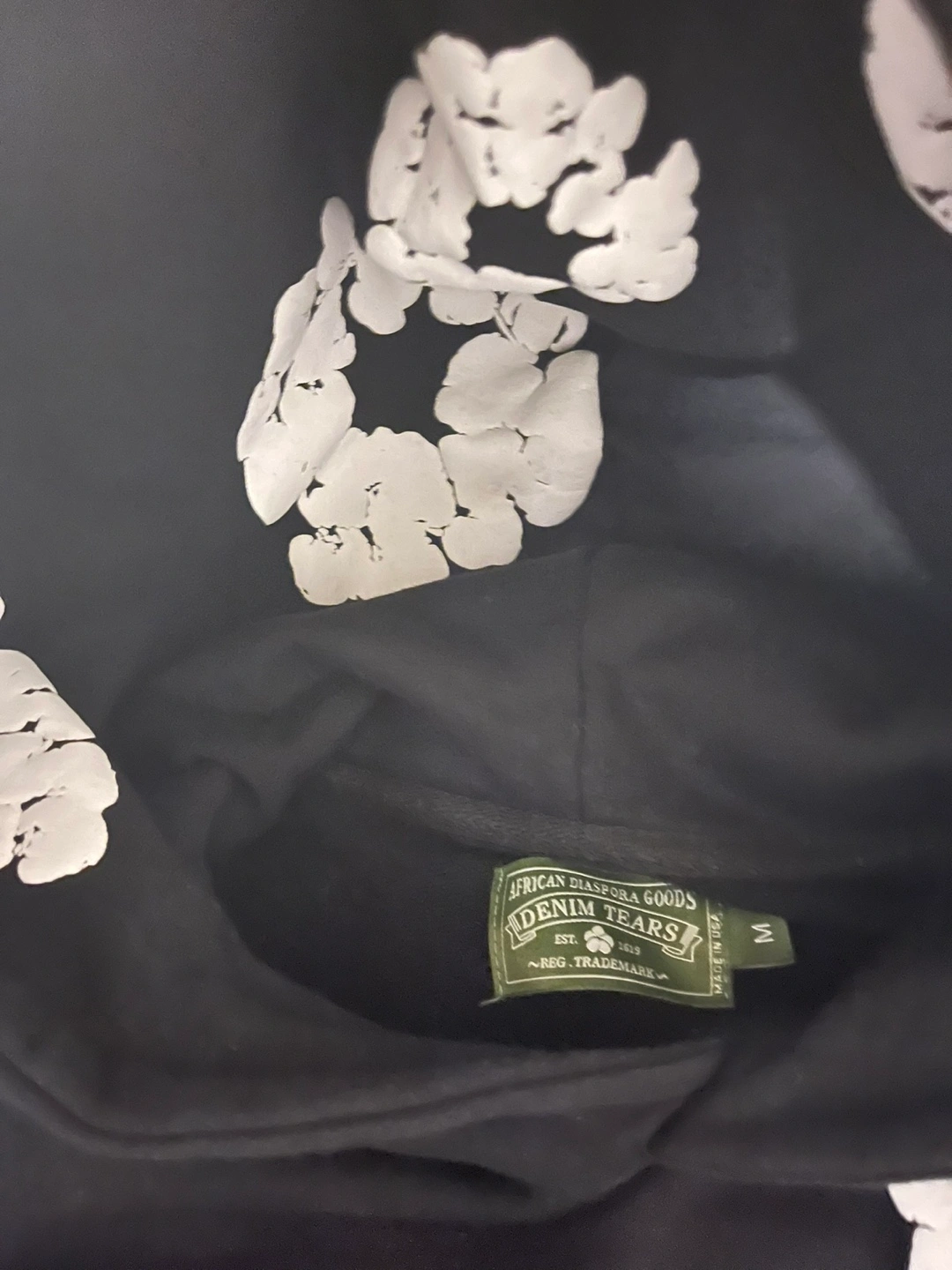 Black hoodie with white floral pattern. Made in the USA. 100% cotton. Machine wash cold. Demin tears hoodie All tags✅ Size M Puff print is the best Can go lower No trades sorry Meet up only If you got more questions I would be happy to answer them Can send more pics of it Check my other listings please and thank you GOD BLESS 🙏