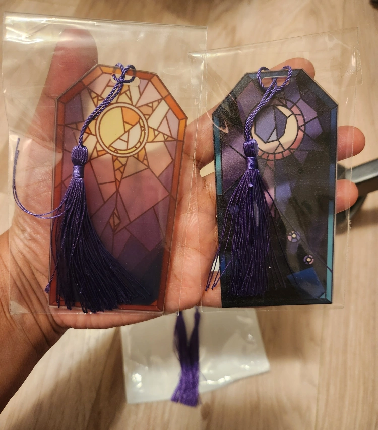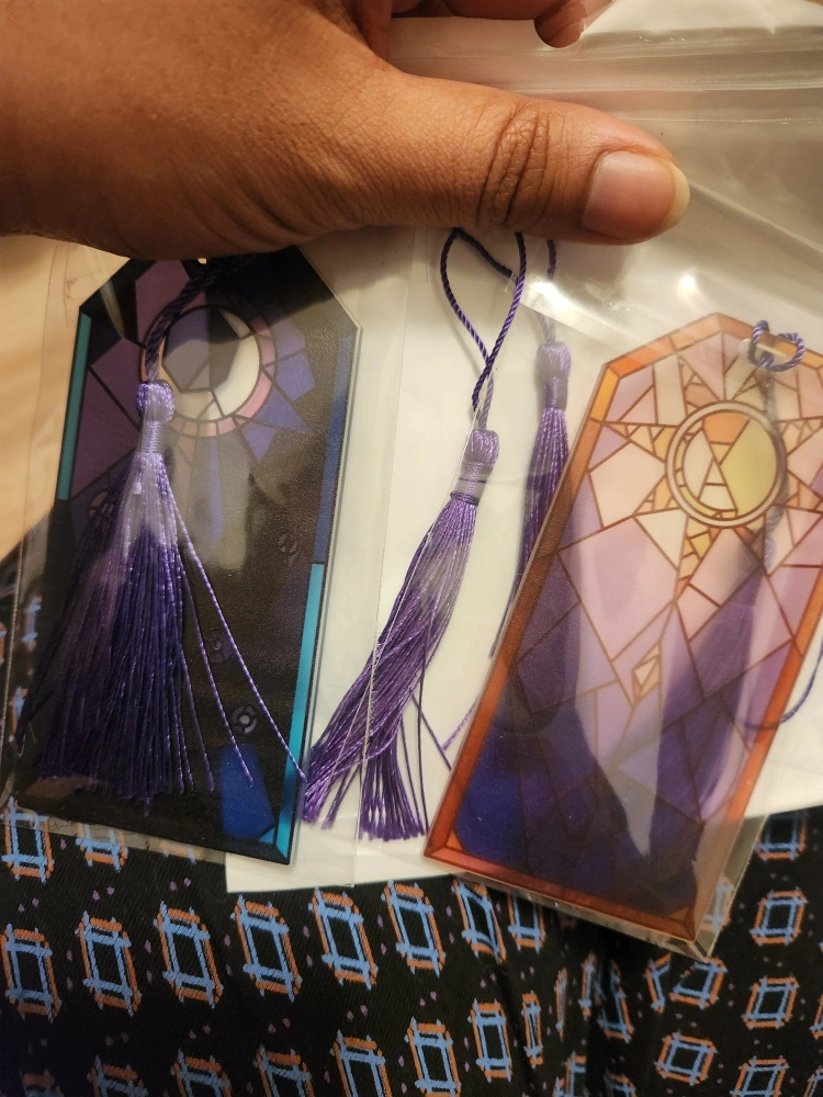 Pair of beautiful bookmarks. Stained glass design. Purple tassels. Individual cellophane packaging. Perfect for book lovers.