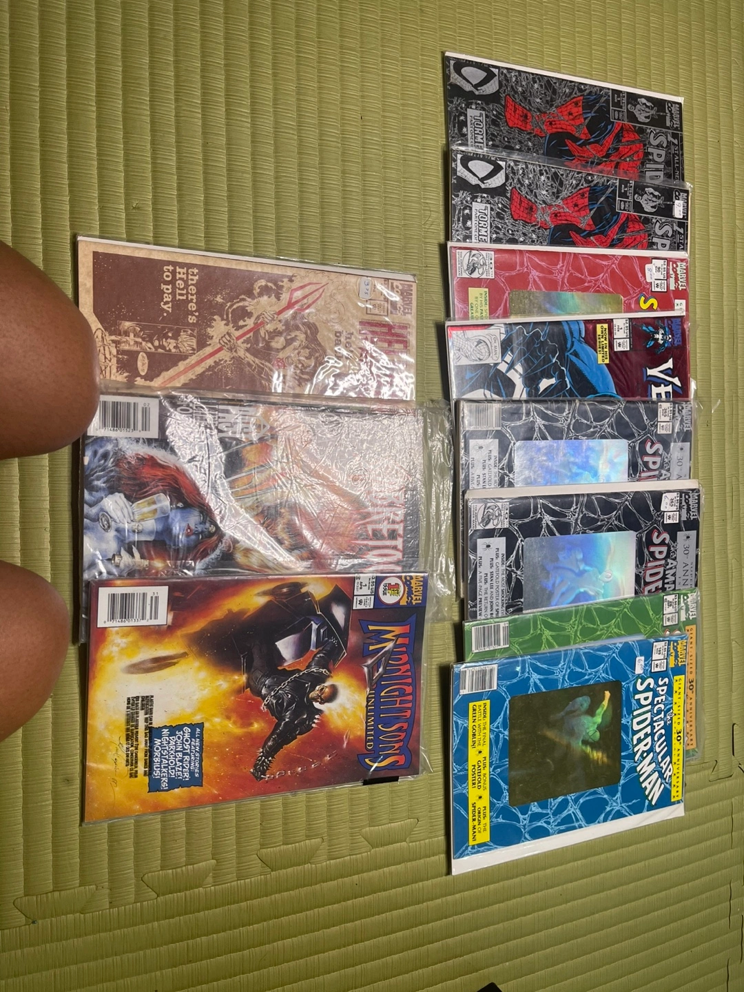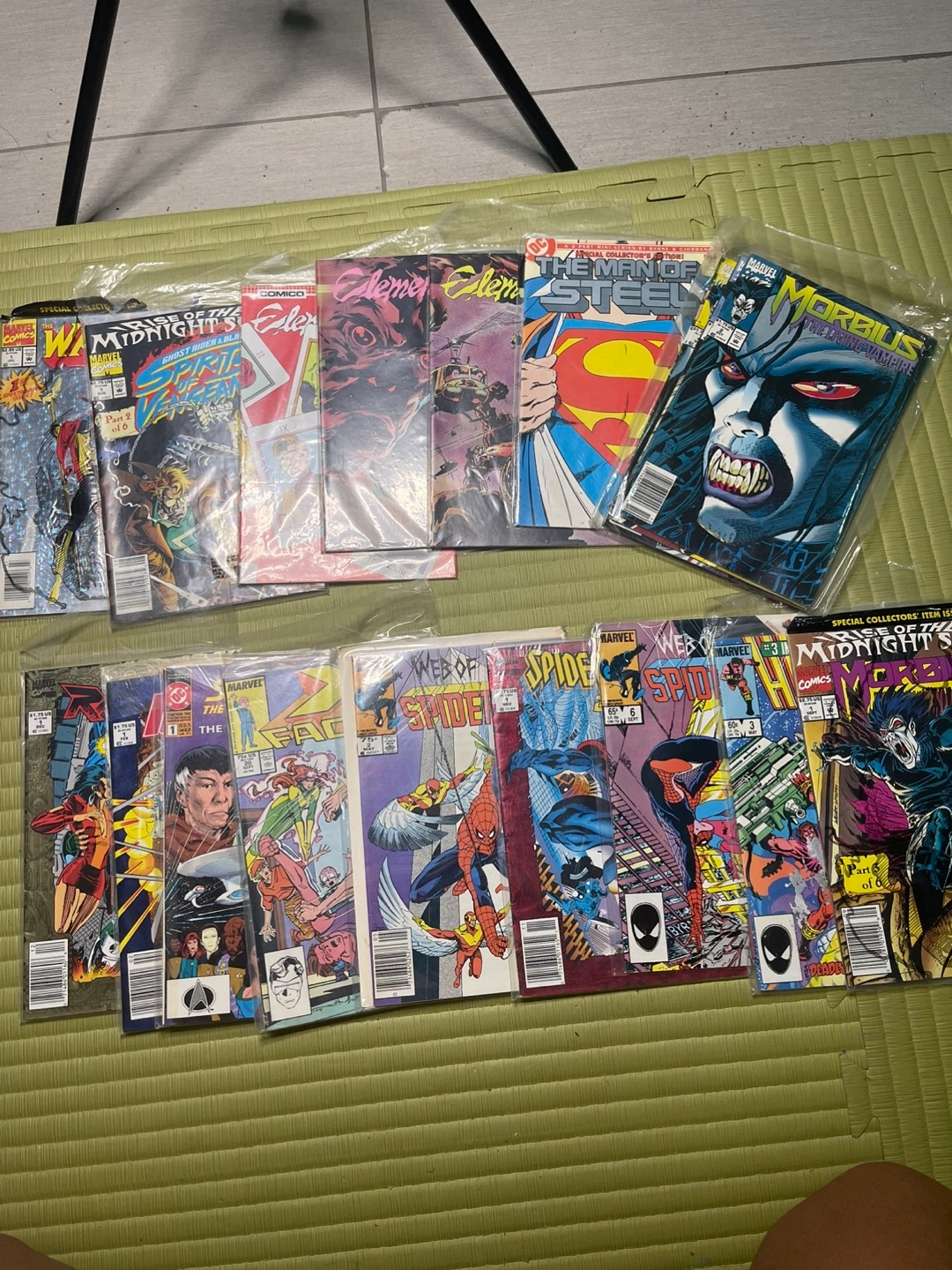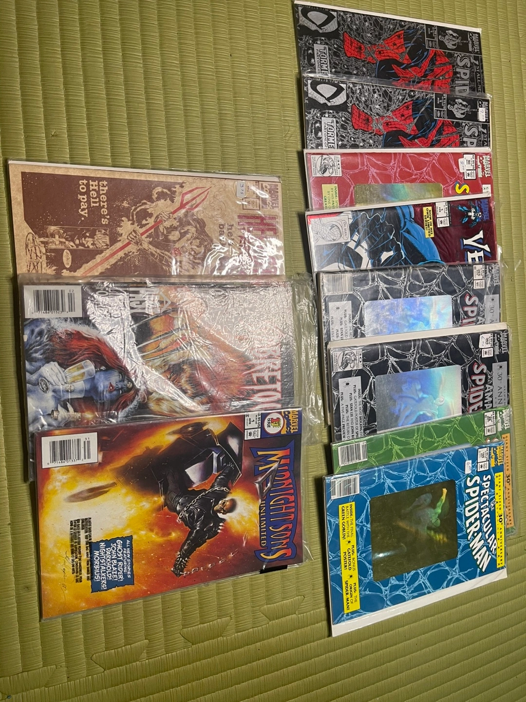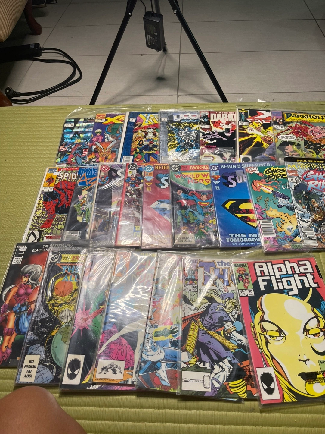 Collection of bagged comic books. Various titles and issues included. Mostly from the 1990s. Great for collectors or casual readers.
