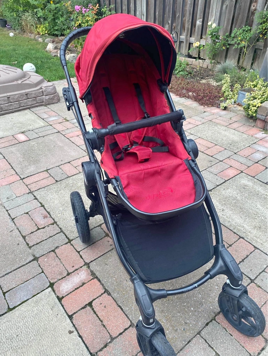 Red Baby Jogger City Select stroller. Good condition. Includes storage basket. Features adjustable canopy and multiple recline positions. Pick up only Located near Mt. Pleasant and Eglinton Ave East