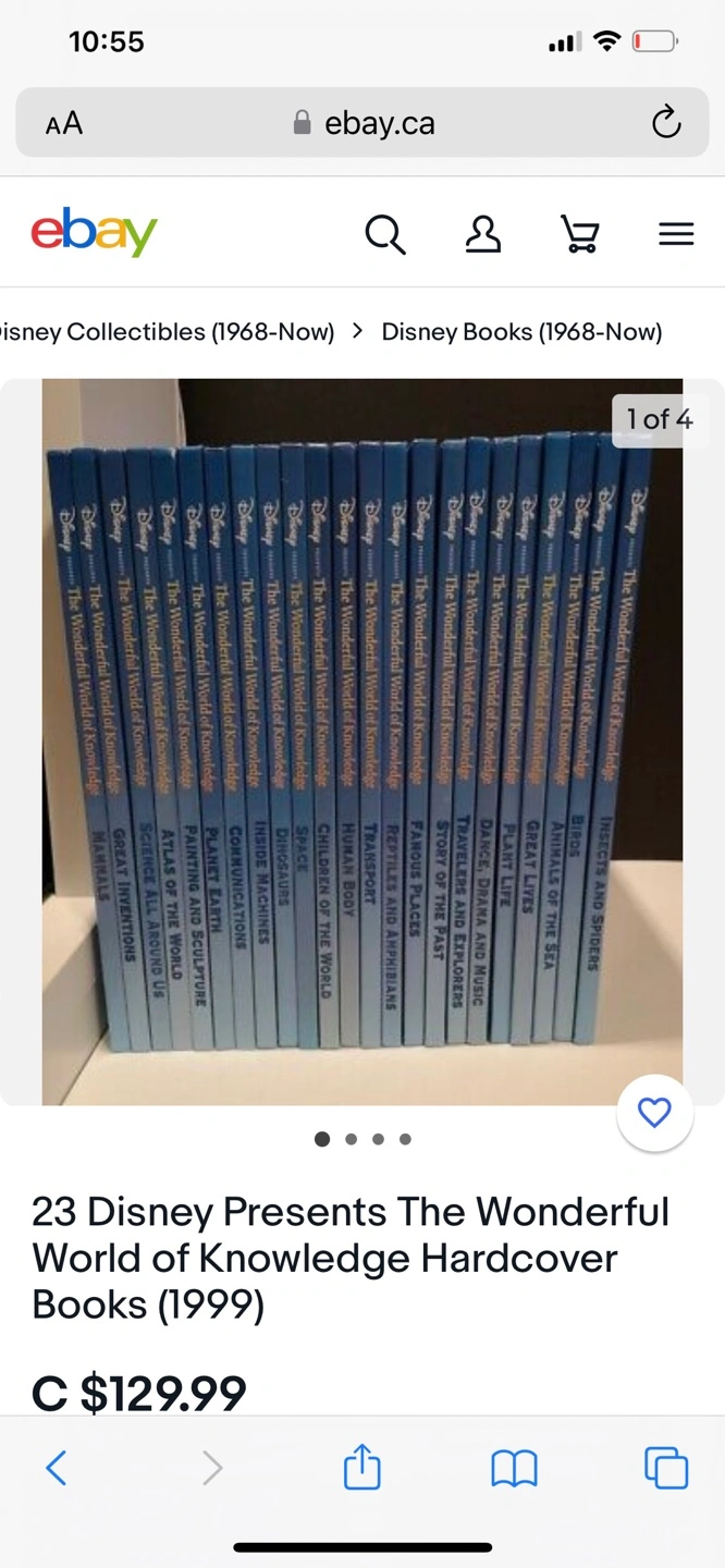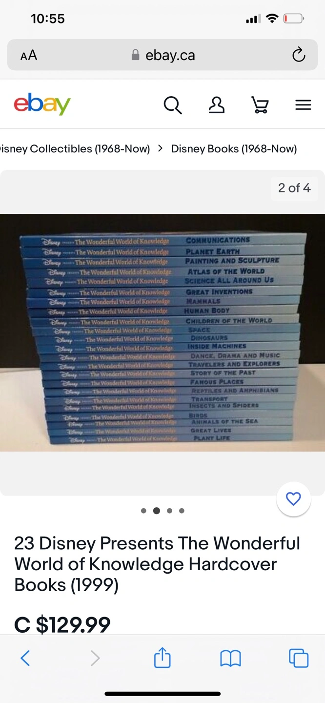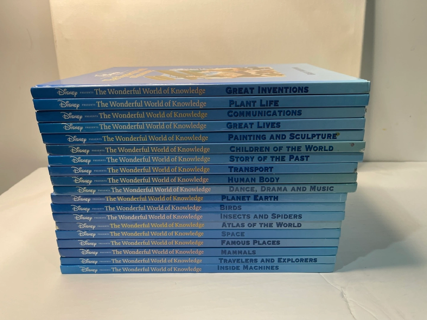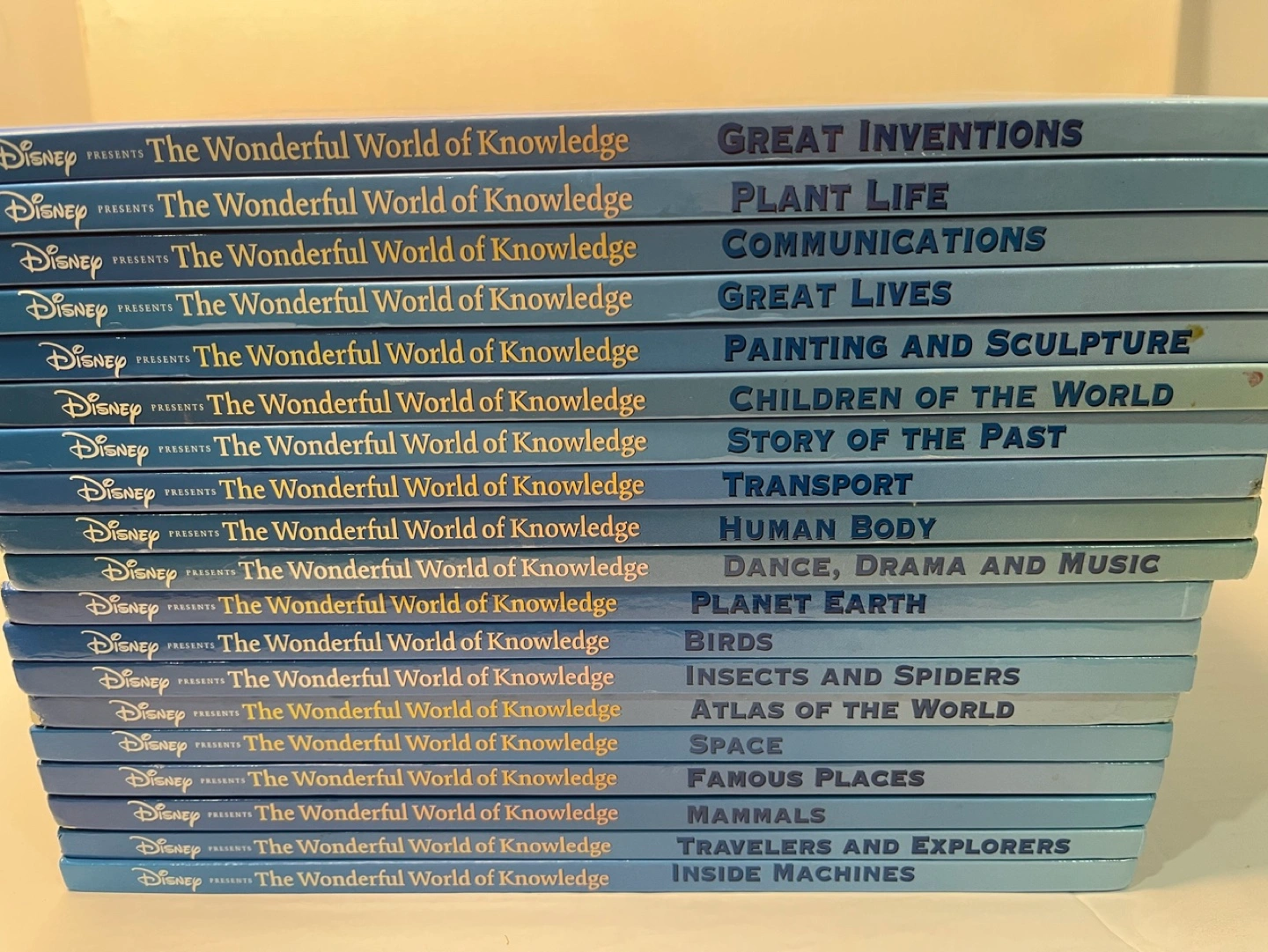 Collection of 23 hardcover books. Part of the Disney Wonderful World of Knowledge series. Published in 1999. Various topics covered.