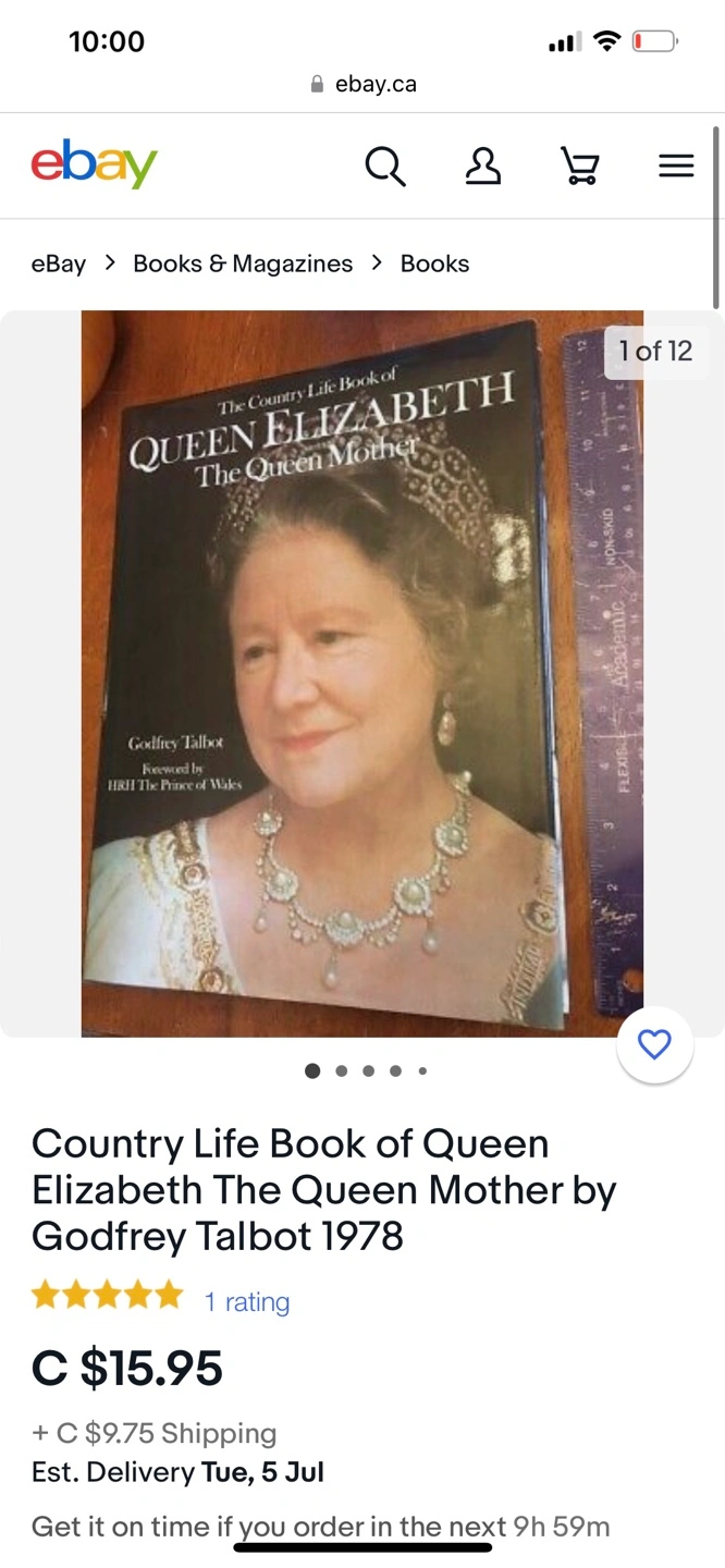 Hardcover book. Features photos of Queen Elizabeth, The Queen Mother. Foreword by HRH The Prince of Wales.