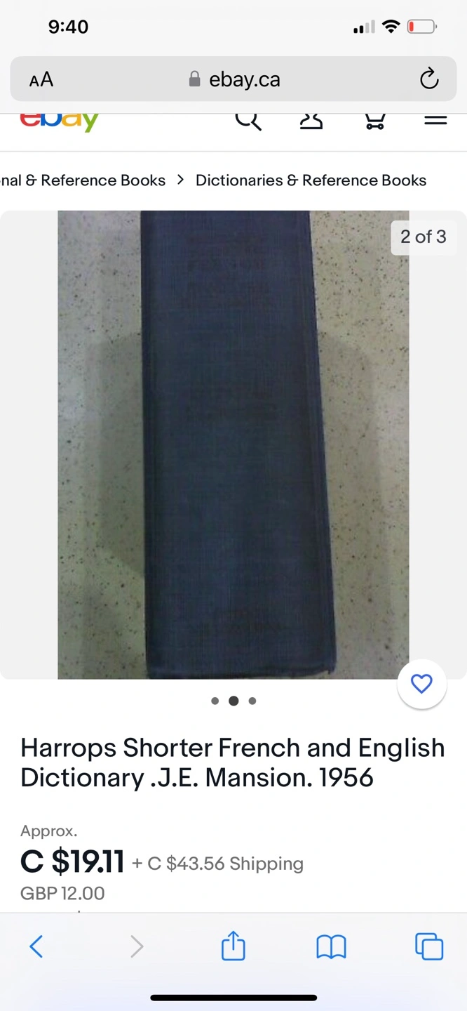 Vintage Harrap's Shorter French and English Dictionary by J.E. Mansion. Part two, English-French. 1956 edition. Hardback.