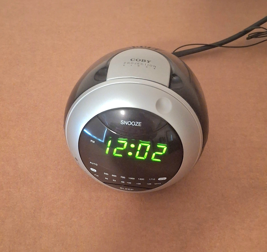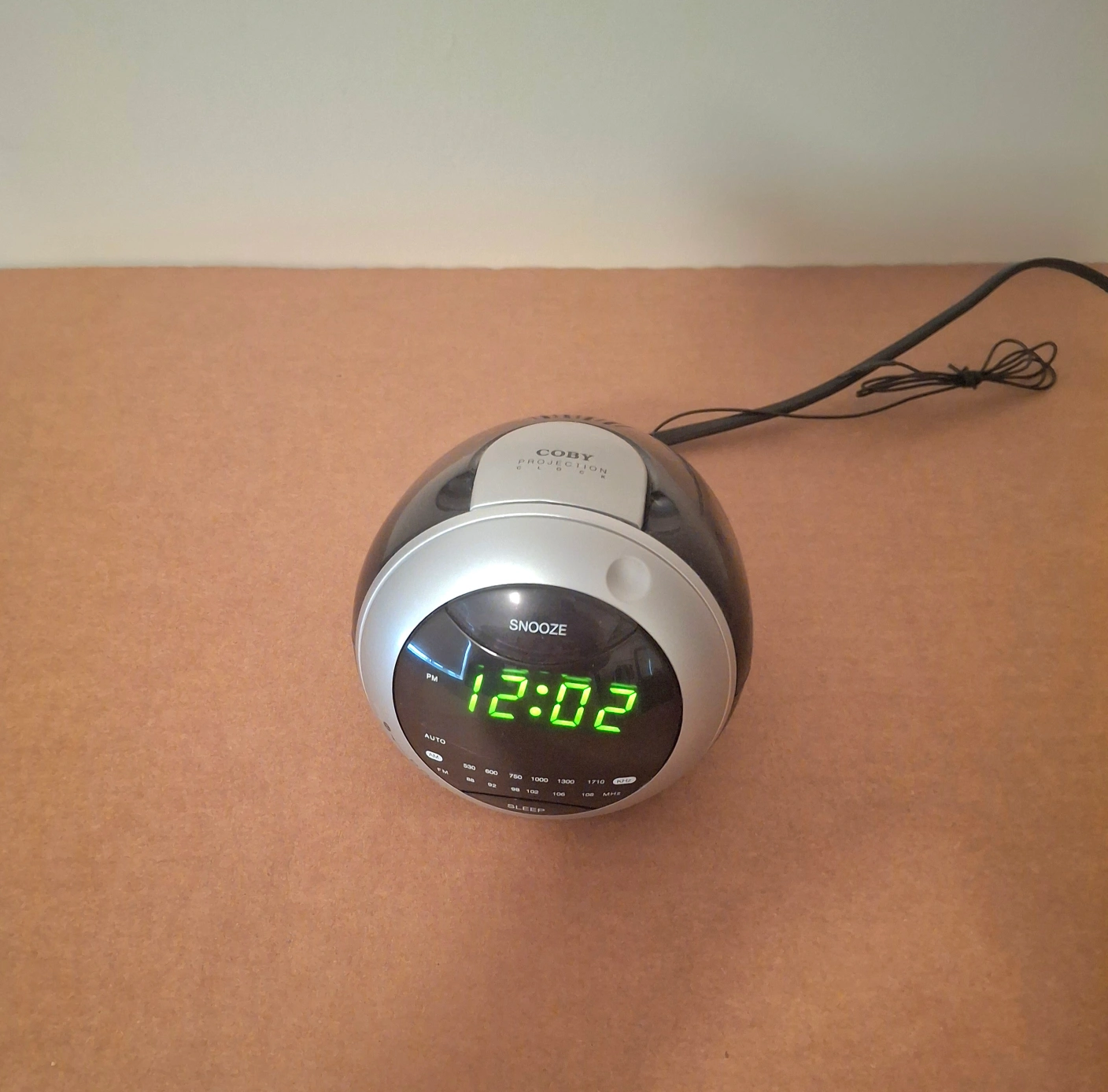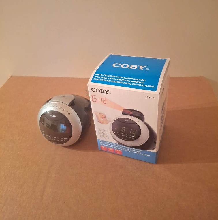 A lightly used COBY CRA79 Digital Alarm Clock Radio with Projection is the perfect accessory for the home. This unique black and chrome teardrop eyeball design is a fun retro piece that combines style and function. It features an easy to read LED digital display as well as a projection clock display. It is also an alarm clock with AM/FM radio, and comes with set-up instructions. Size: 6.5" × 4.5" Available for pick up in MISSISSAUGA Square One near Celebration Square. Payment: Cash or e-Transfer.