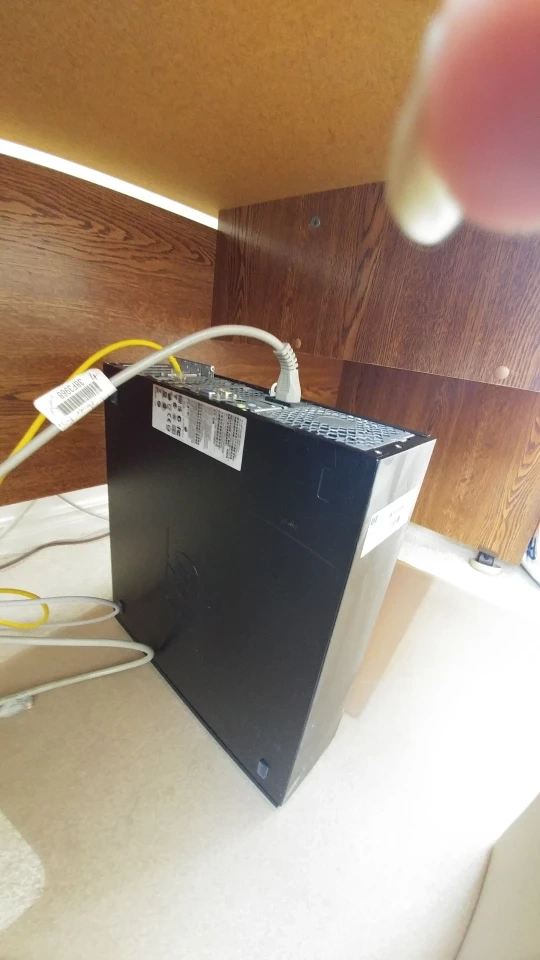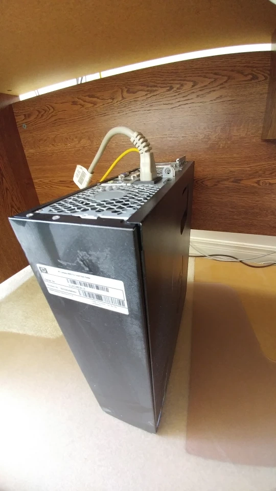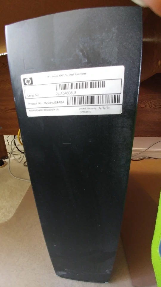 Used HP Compaq 6000 Pro Small Form Factor desktop computer. Black tower. Includes power cord. Pre-owned.