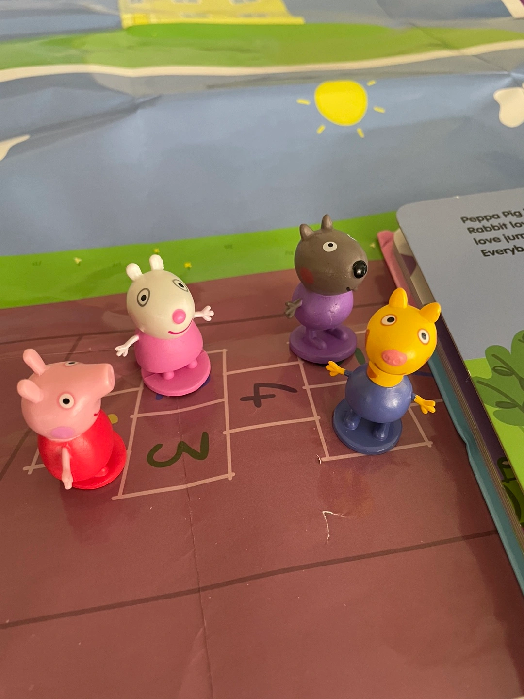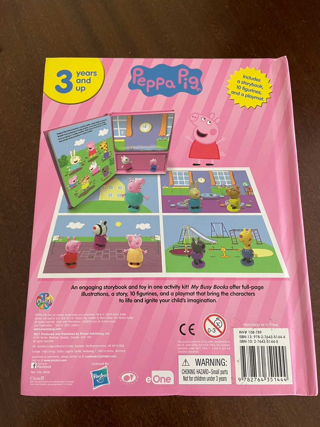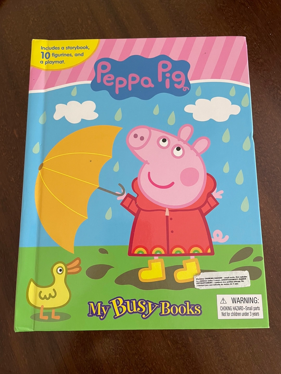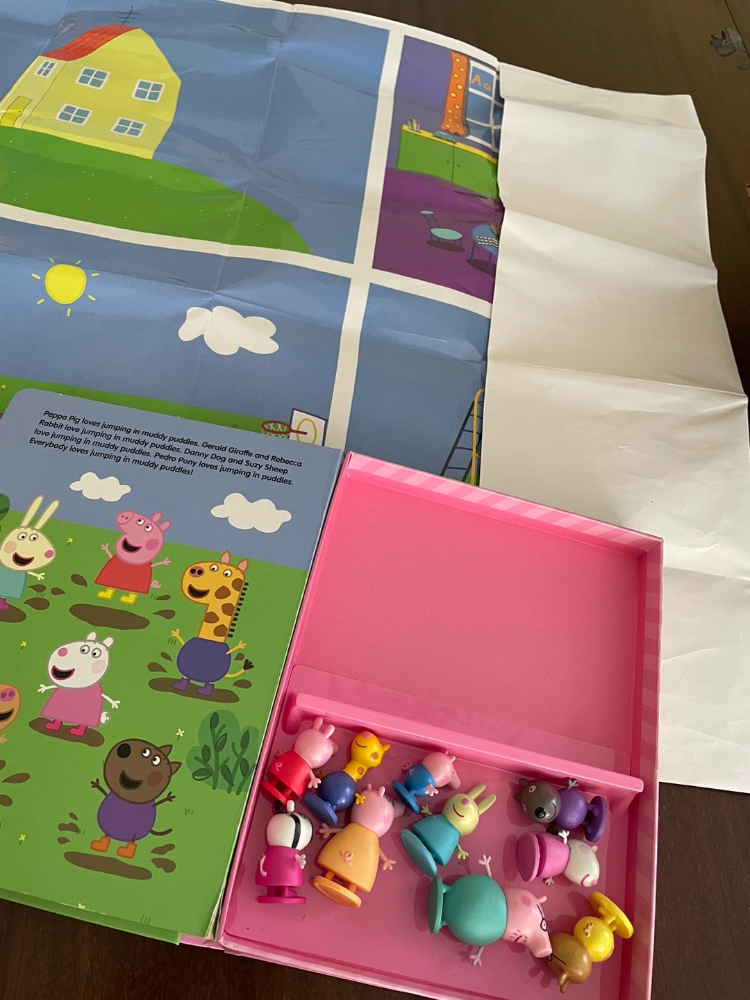 Peppa Pig storybook, playmat, and ten figurines. Great for imaginative play. Suitable for ages three and up.