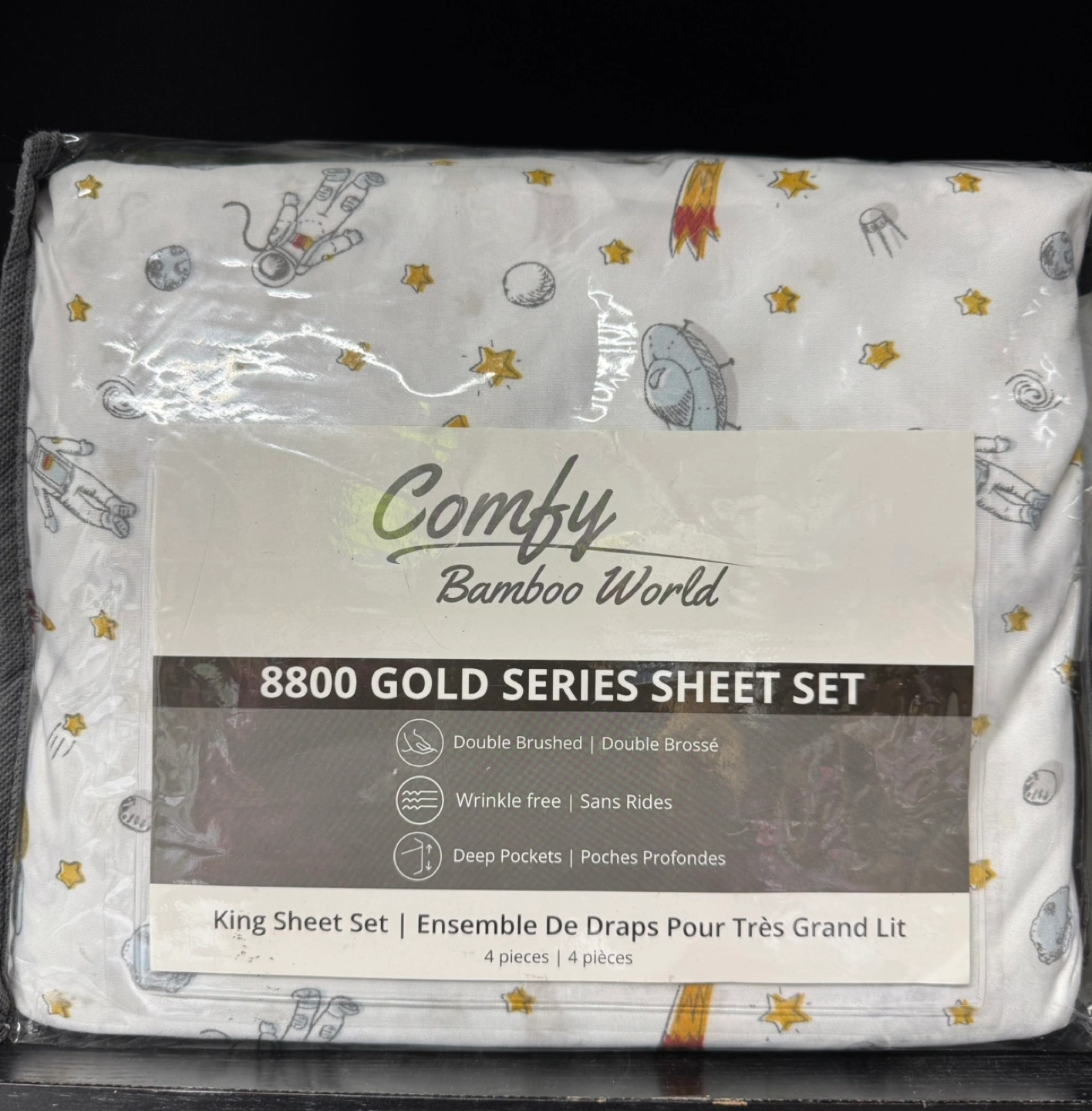 STORAGE CLEAN OUT !!!! No offers please Pick up: Airport and Sandalwood, Brampton More items for sale for great prices ๐ Details about item listed ๐ Drift off to dreamland among the stars with this new Comfy Bamboo World 8800 Gold Series King Sheet Set, featuring a delightful space-themed design. These sheets promise a soft and cozy night's sleep. Specifications: * Brand: Comfy Bamboo World * Series: 8800 Gold Series * Size: King * Material: Bamboo * Features: Double Brushed, Wrinkle-Free, Deep Pockets Don't let this opportunity float away! If the ad is still orbiting, these stellar sheets are available for you. Grab them before they disappear into a black hole!