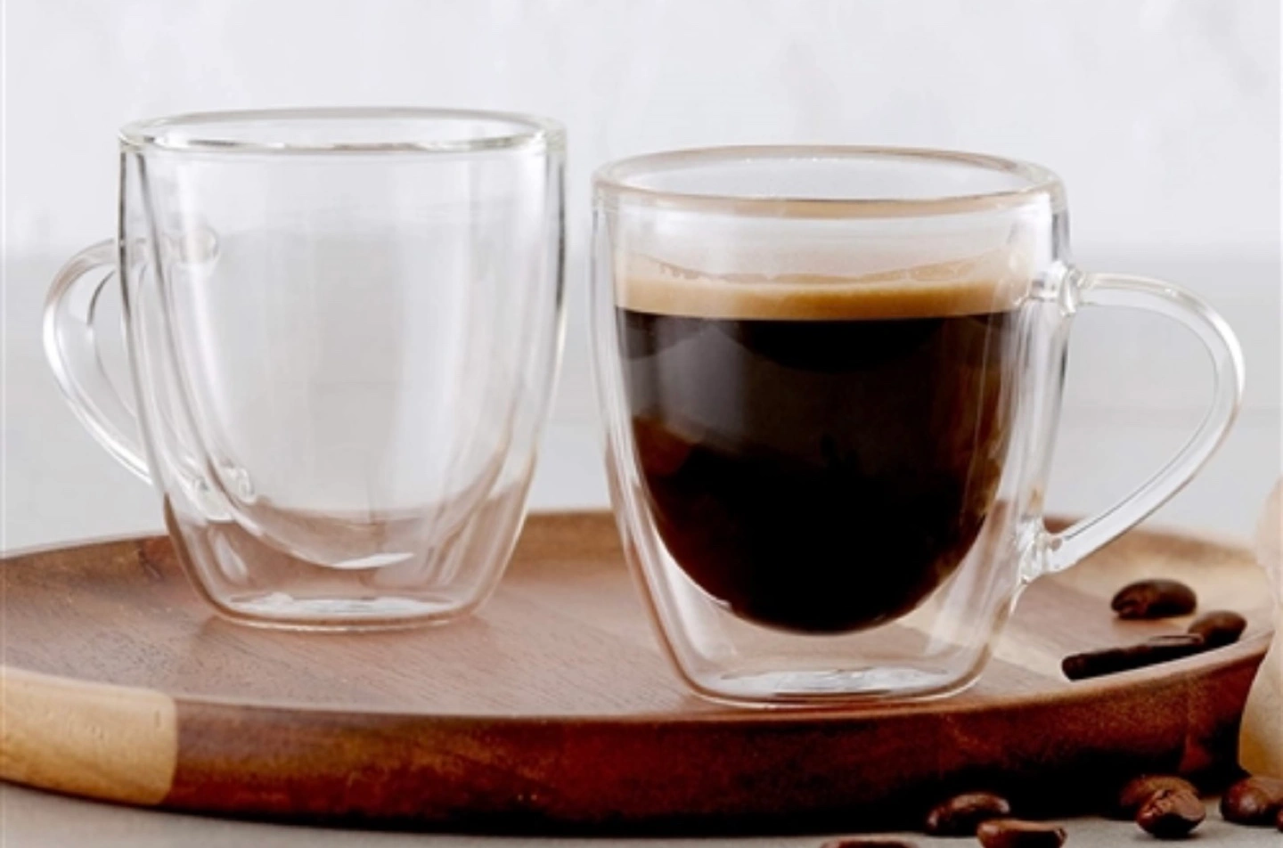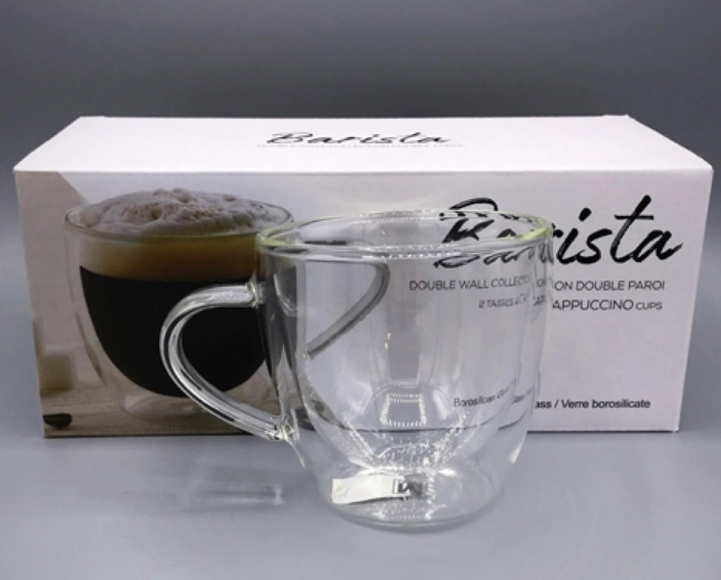Barista Collection for your Single or Double Espresso, Lungo, Macchiato, Turkish Coffee. These small glasses come with a handle and have the perfect curvature and proportions for your favorite espresso drink. 2 pc set box Practical & resistant, easy care
