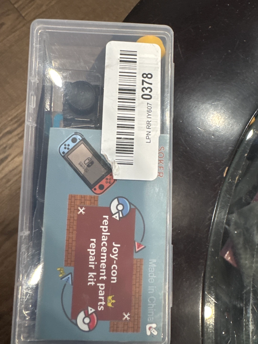 Joy-Con replacement parts repair kit. Includes various components for repairing your controllers. Made in China.