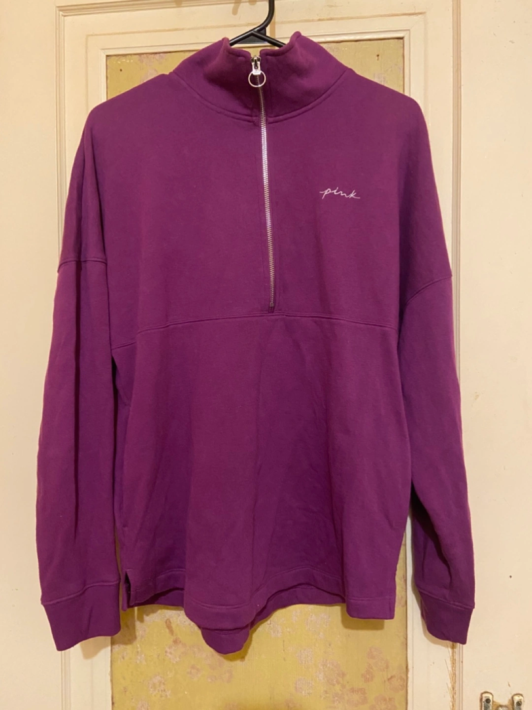 PINK VS Half zip oversized crew neck szXS Condition- in good condition and shape. Has No rips. No wear or tear Size- xsmall (oversized fit small/ medium) Colour- fuchsia Short collar, Has side pockets. Zip up Cash Payment Only No Refunds / Exchange No try ons, No trading, No holds. All purchases are Finally Sale From a Smoke Free home Fast pick up Confirmed Price-$20 Pick up- at TTC Station- Coxwell subway station Located In East York, Toronto