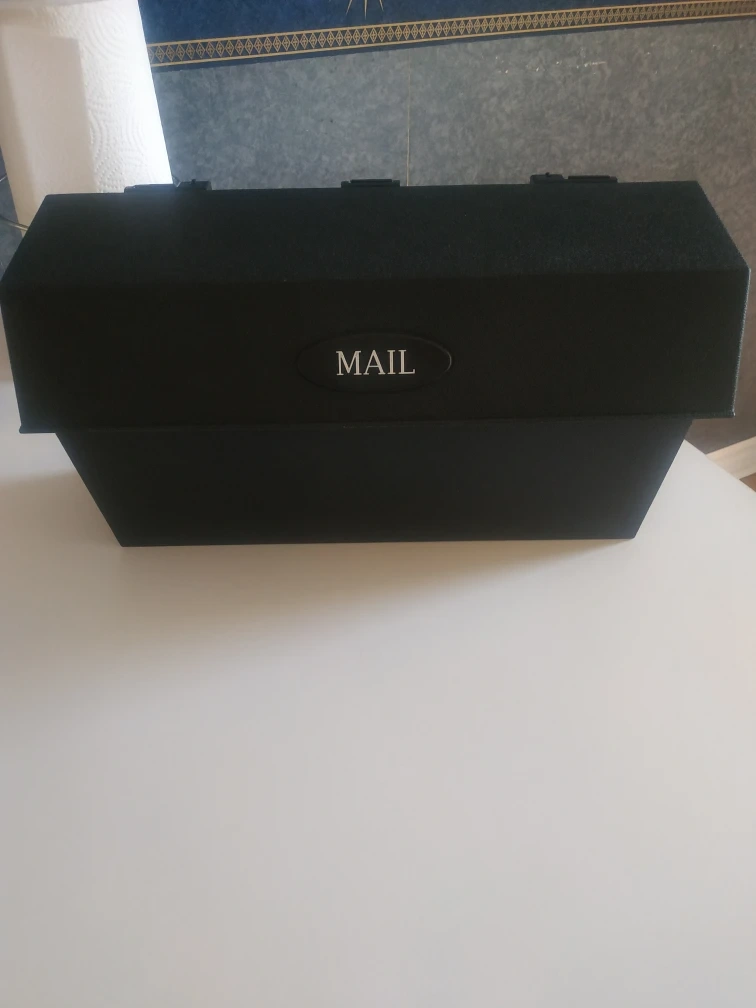 Black plastic wall mount mailbox. Measures approximately 16" long. Includes mounting hardware. Durable high quality plastic, paid $40 from Home Depot but didn't use. $30 Firm please.