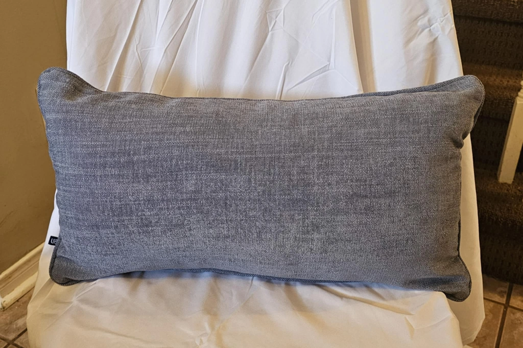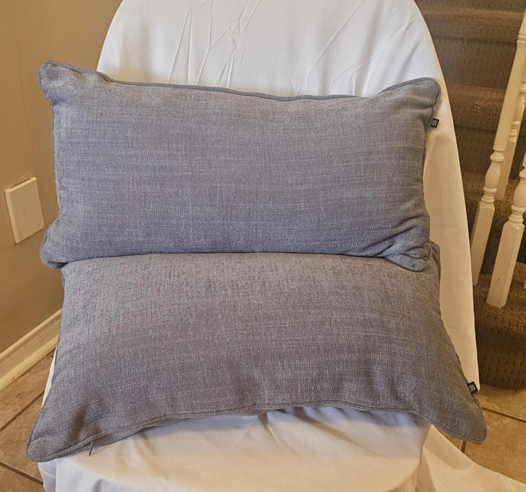These 2 Blue Urban Barn Rectangle Decor Pillows have only been used for decor. 100% Polyester Measurements: 21 x 11 1/2 inches. From a smoke free home. Cash and E-Transfer accepted. Pick up only.