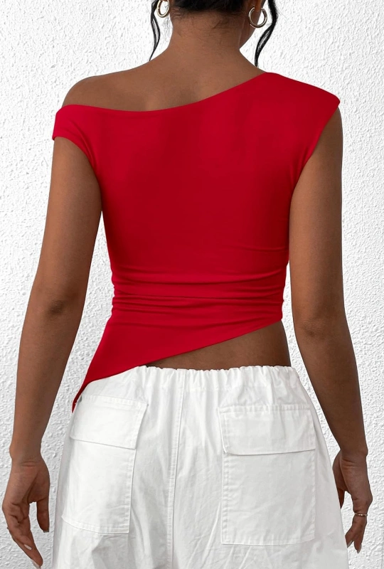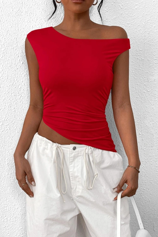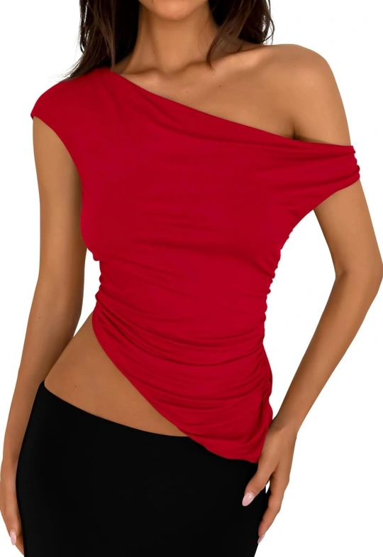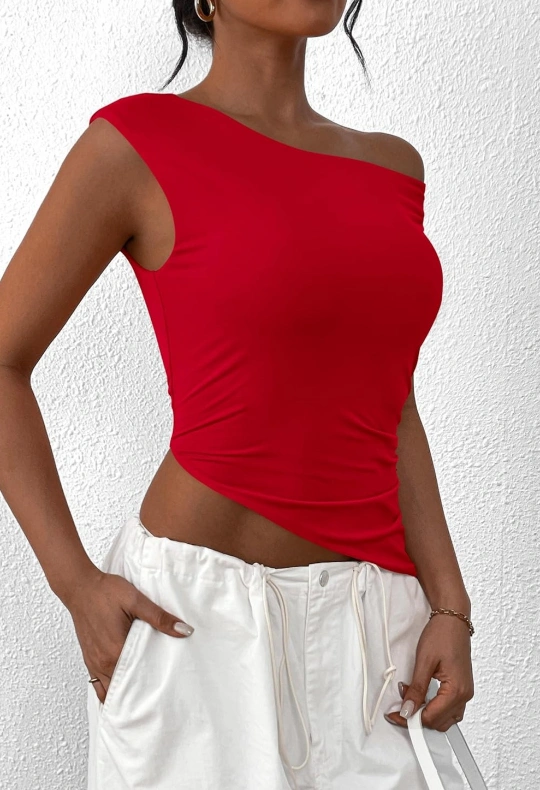 Women's sleeveless asymmetrical red crop top. One shoulder design. Ruched detailing. Summer style. Size small. Sells for $29.99 +tax on Amazon. Own it for a much lesser price! Check out my other listings and bundle to save. ๐๐ป๐ธ Cash and pickup only on Brimley and Eglinton Rd E. in Scarborough.