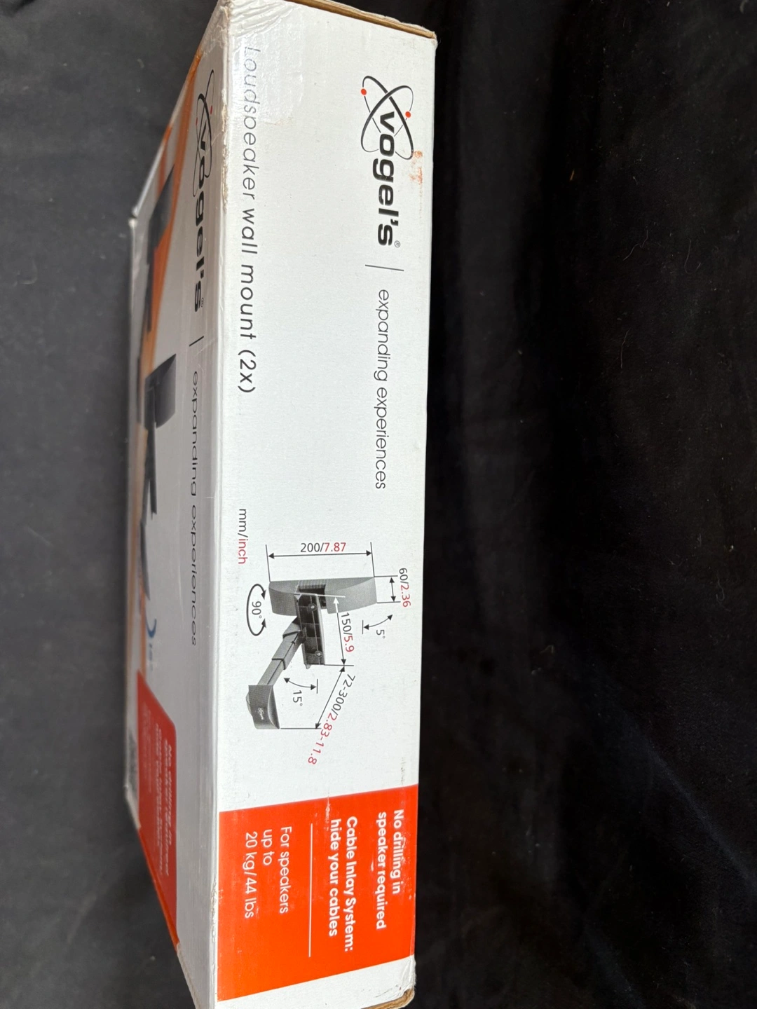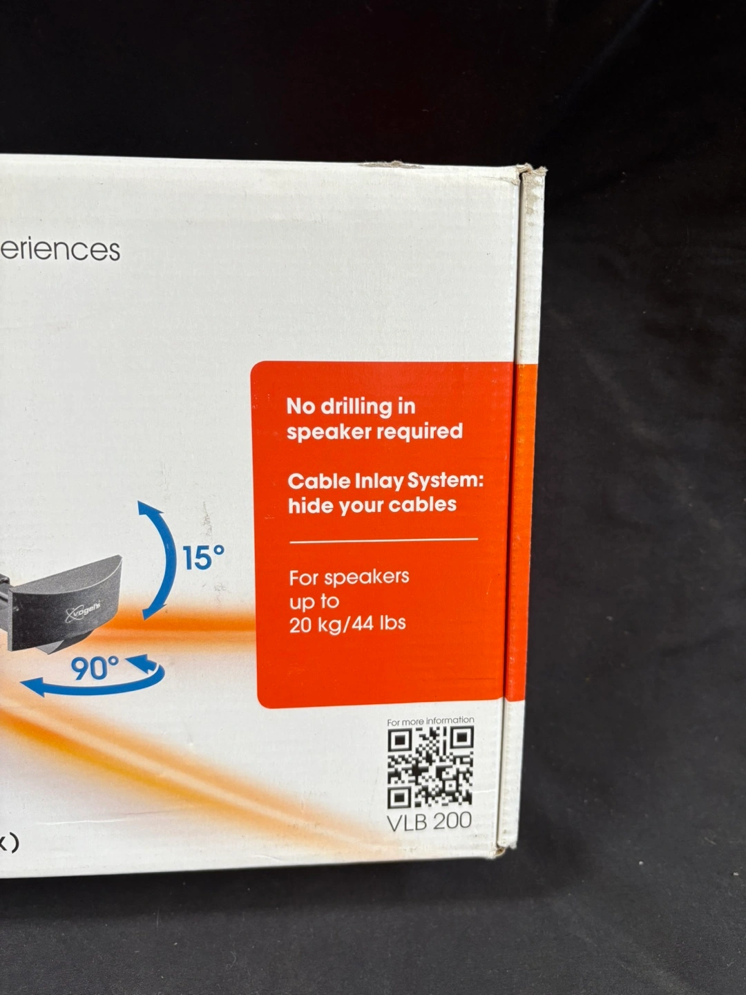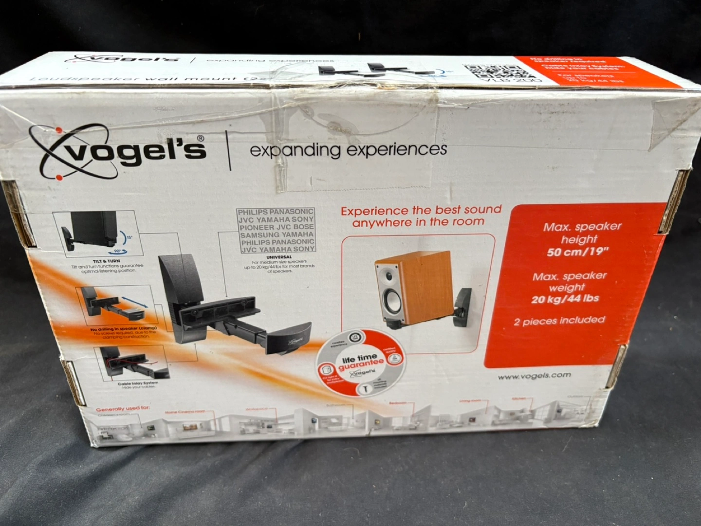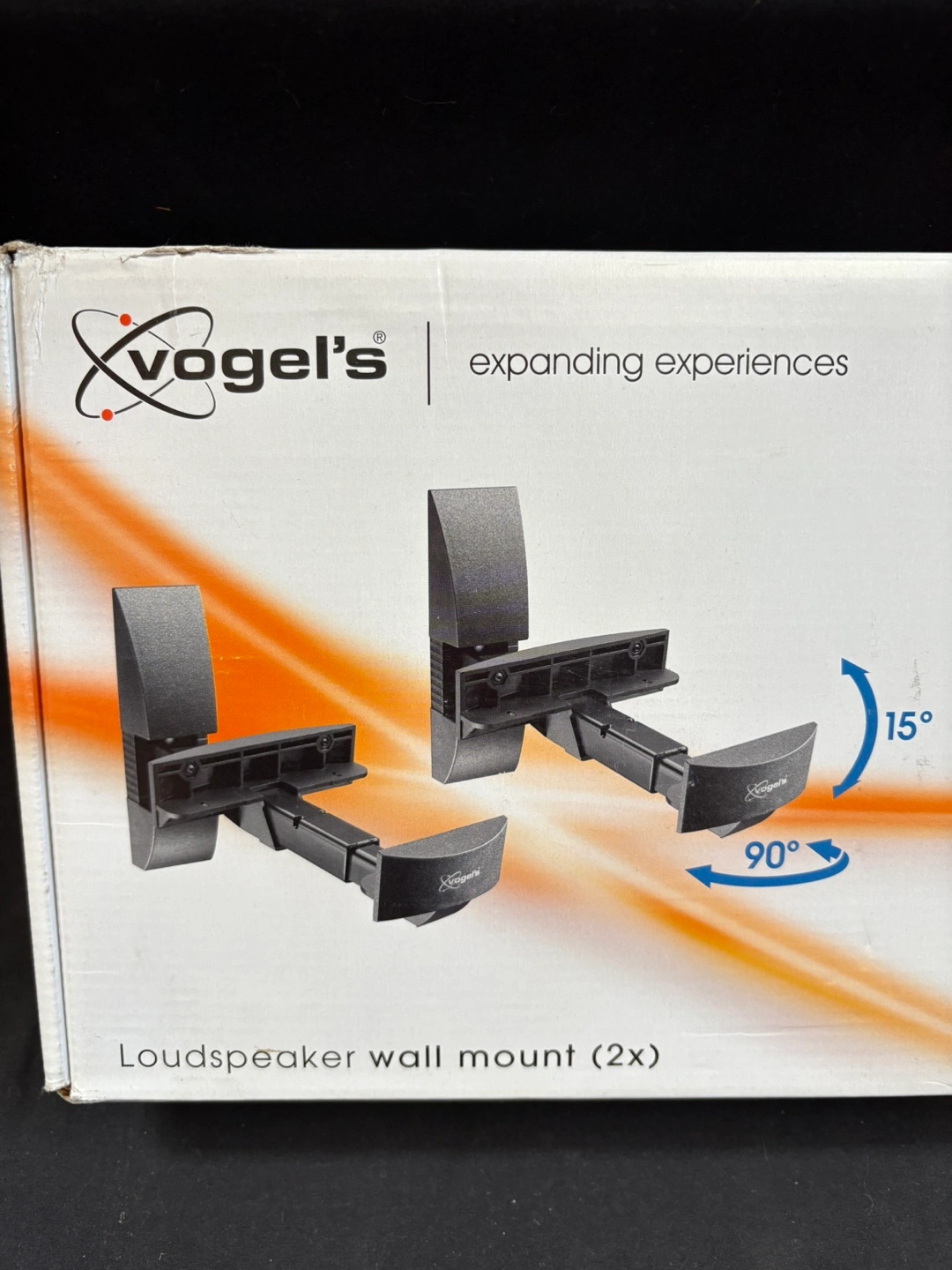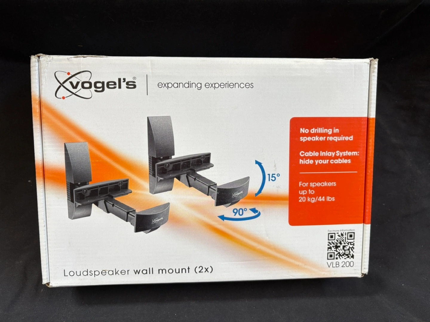 new Vogel's VLB 200 Loudspeaker Wall Mounts (2x) Pair of Vogel's VLB 200 loudspeaker wall mounts. Supports speakers up to 20 kg/44 lbs. No drilling required. Cable inlay system to hide cables. 90° and 15° tilt.$5 Pick up Victoria Park and O’Connor area