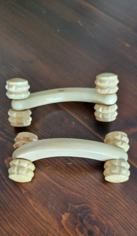 Never used, new two wooden back massagers. Lightweight and easy to use. Perfect for self-massage. Wooden rollers. Pickup only.