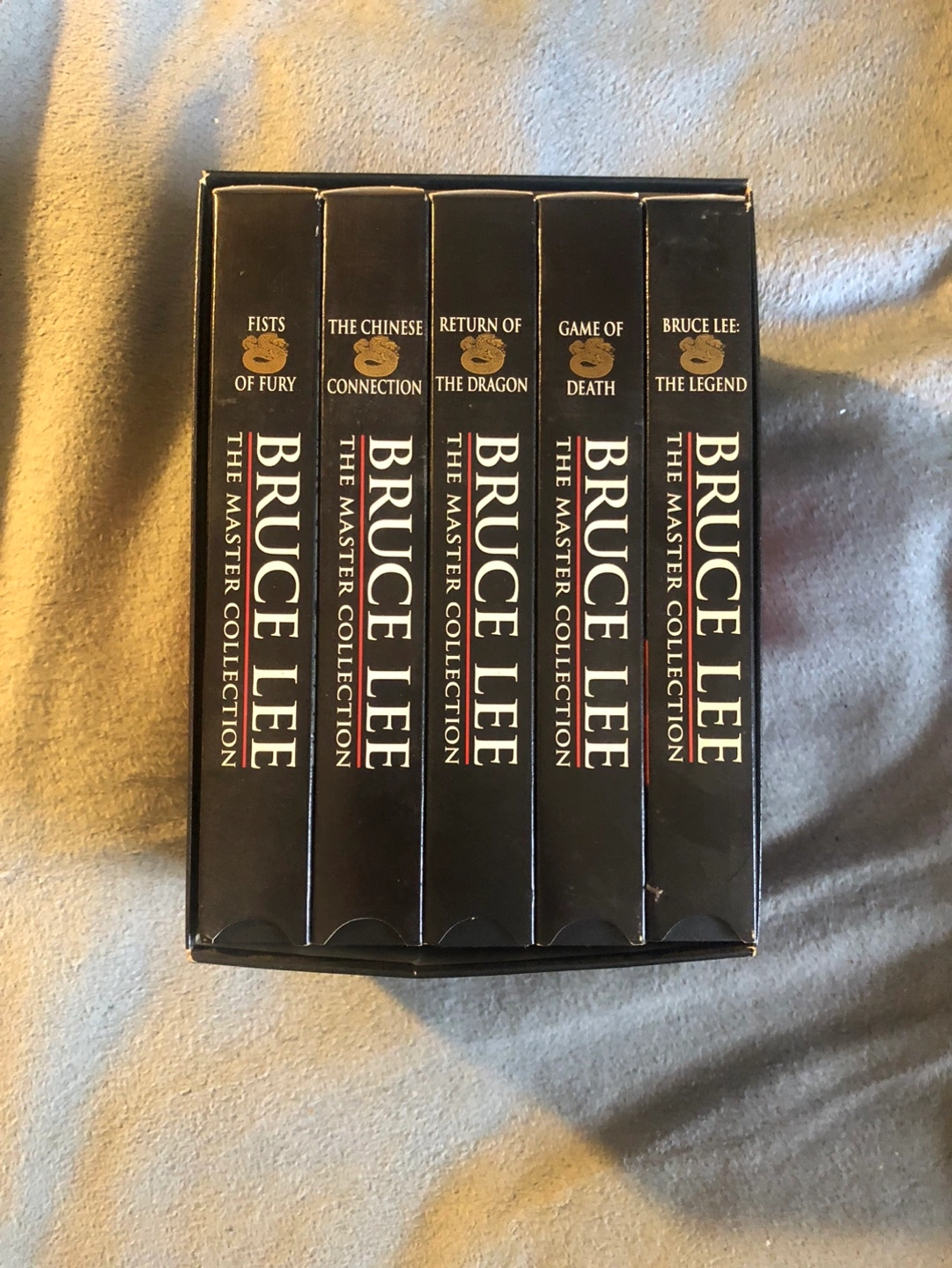 Bruce Lee The Master Collection VHS Boxset Four fan favourite, classic films and a feature length documentary Includes: Fists of Fury 1971 The Chinese Connection 1972 Return of the Dragon 1973 Game of Death 1979 Bruce Lee: The Legend 1984 (Doc) Rereleased in 1999. Finally with matching sleeve and box artwork and the inclusion of the documentary for the first time All tested and working Curb side pickup You pay shipping Buy multiple items for a discount