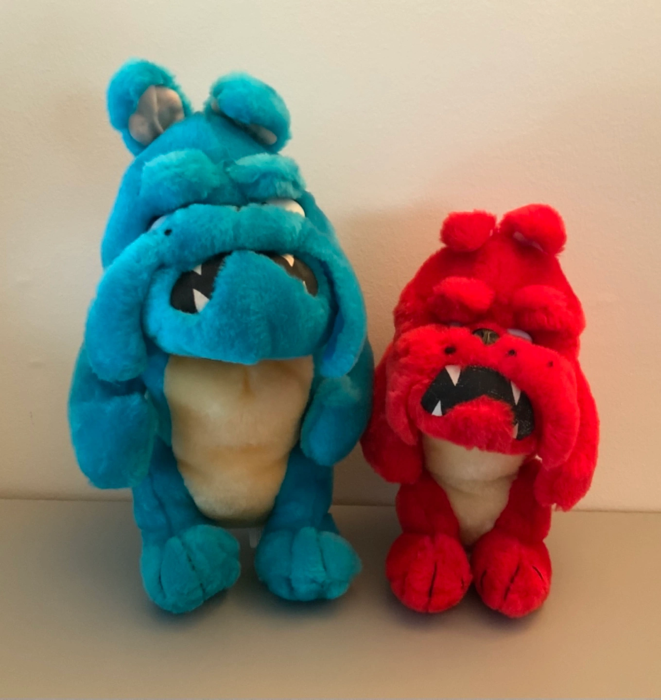 Pair of vintage plush bulldog toys. One red, one blue. Collectible and unique. New plush blue bulldog with a collar 12 inches length. $15. New red plush bulldog with a collar. 10 inches length $10. Both for $20 Pick up location Harmony Road and Adelaide in Oshawa. I like San