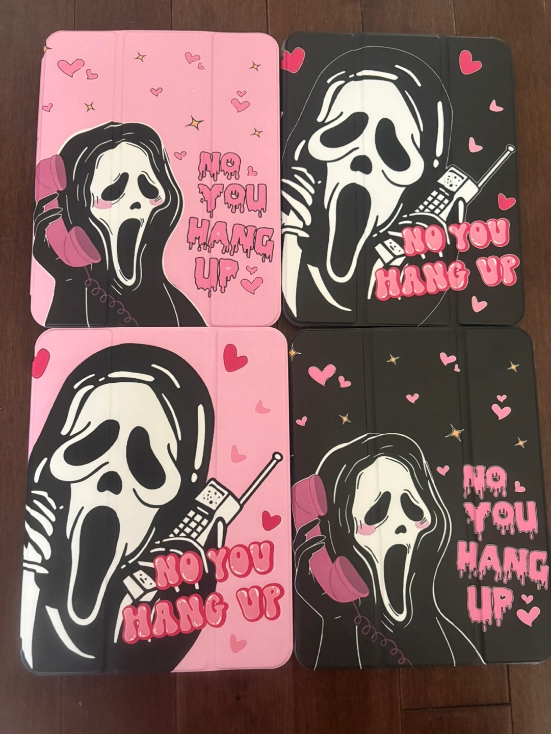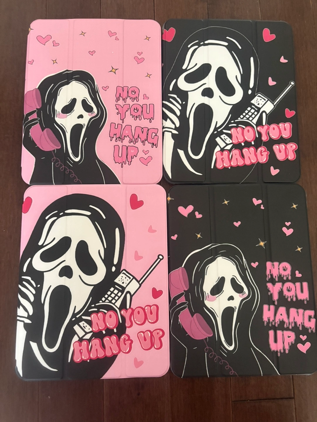 cute and spooky iPad cases. Two pink and two black. Feature Ghostface from the Scream movies. 'No you hang up' text. Great for fans! IPad - 10 $10 each Meet up & cash only pls Meet up is in Nobleton