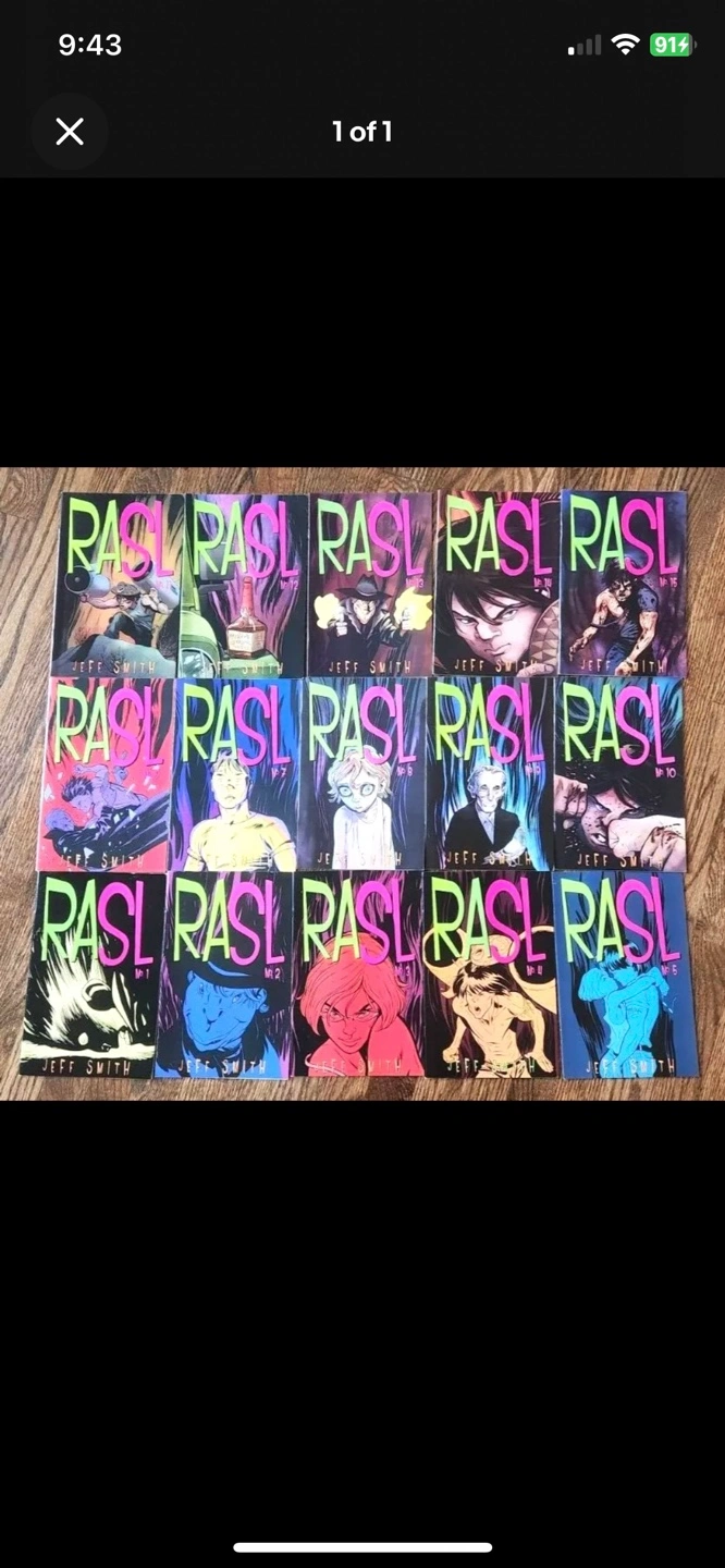 After singlehandedly working on Bone for 13 years, Jeff Smith took some time off. But when he came back he had created this “High octane sci-fi crime romance book”. This is the original 15 black and white issue. All first printing. Clean books No rips or folds Curb side pickup You pay shipping Buy multiple items for a discount
