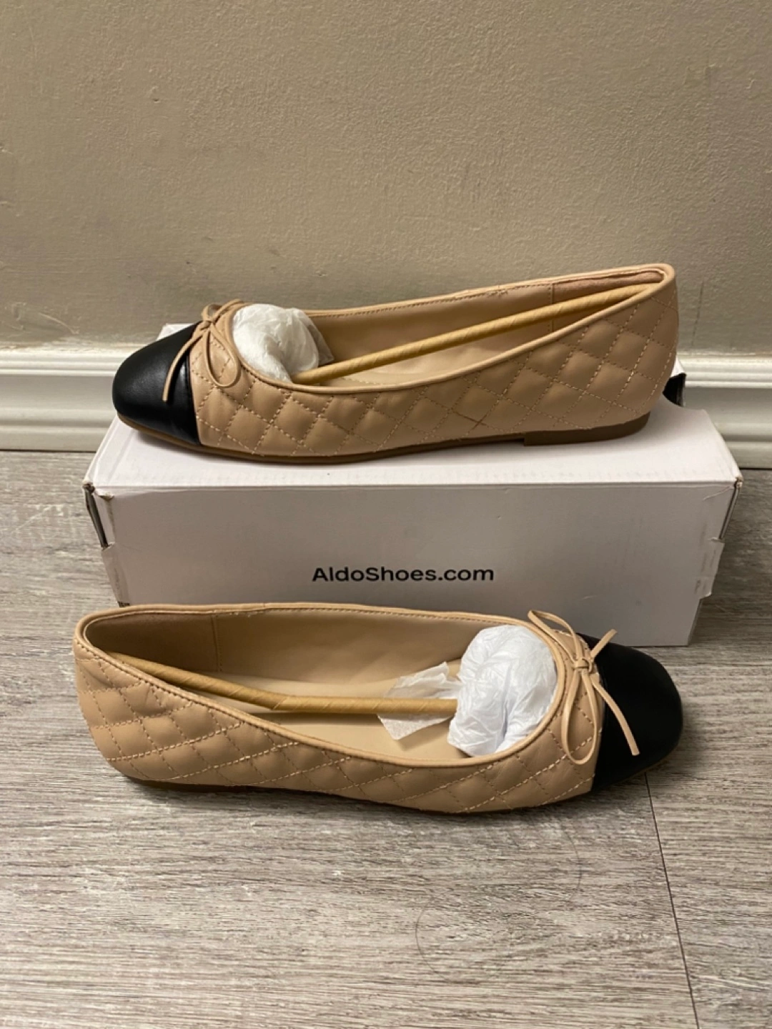 Brand new Aldo Women's Beige and Black Quilted Ballerina Flats
