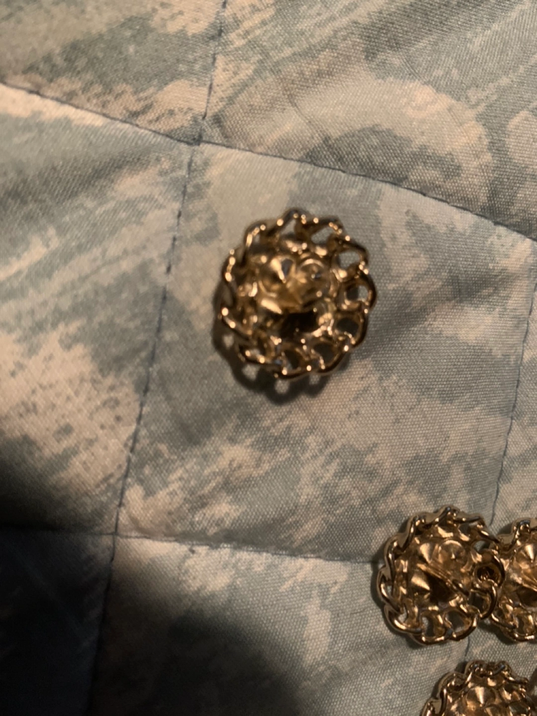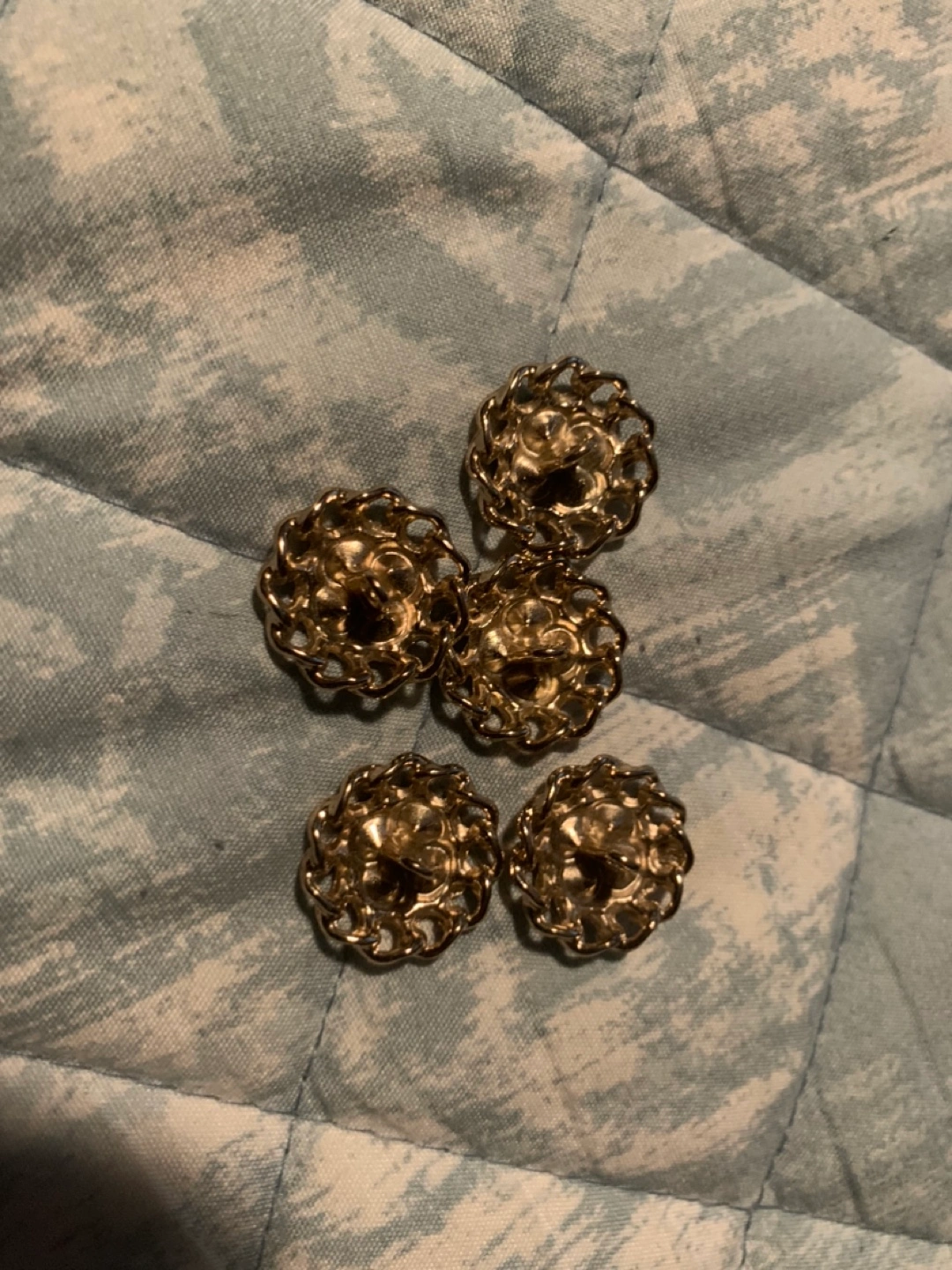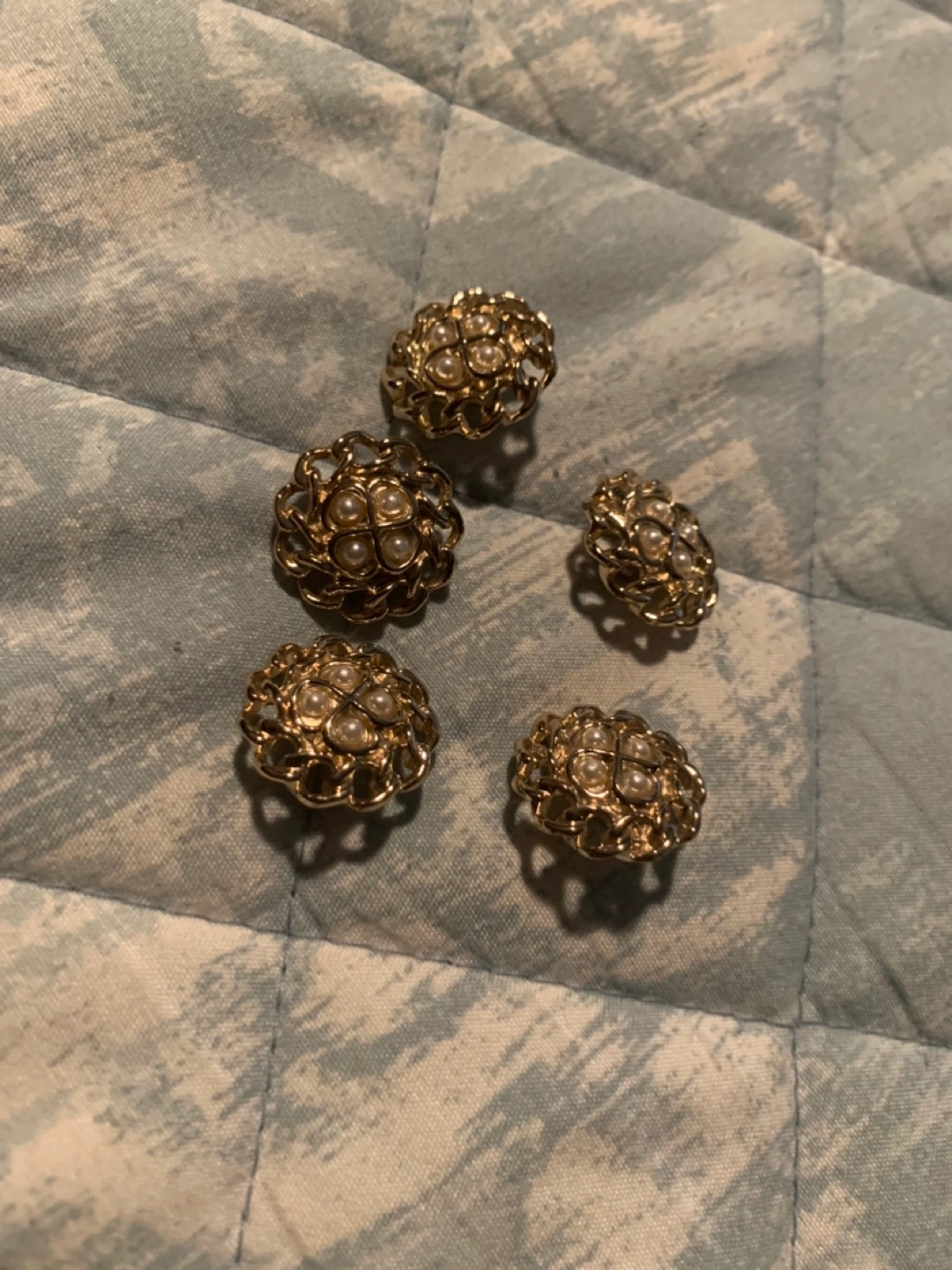 Set of five gold-tone buttons. Features a chain-link design and small pearls. Great for sewing or crafting projects. porch pickup near erin mills town center