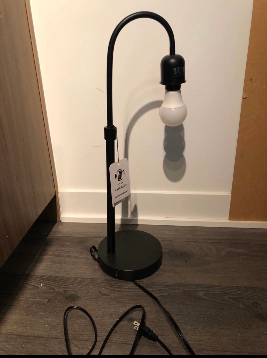 Black metal desk lamp. Features a flexible gooseneck and built-in USB port. Includes lightbulb. Excellent condition. Downtown pick up Cash only