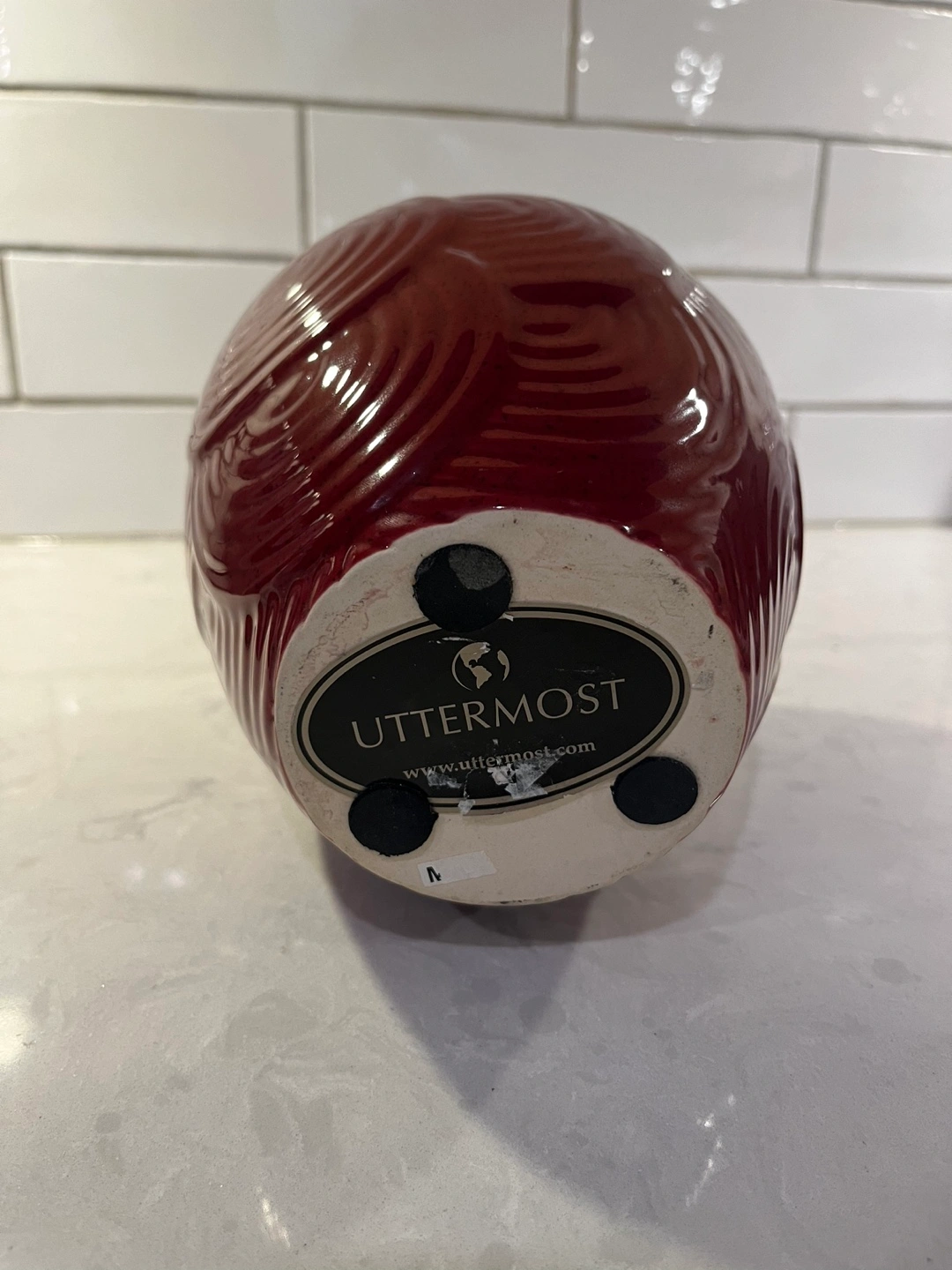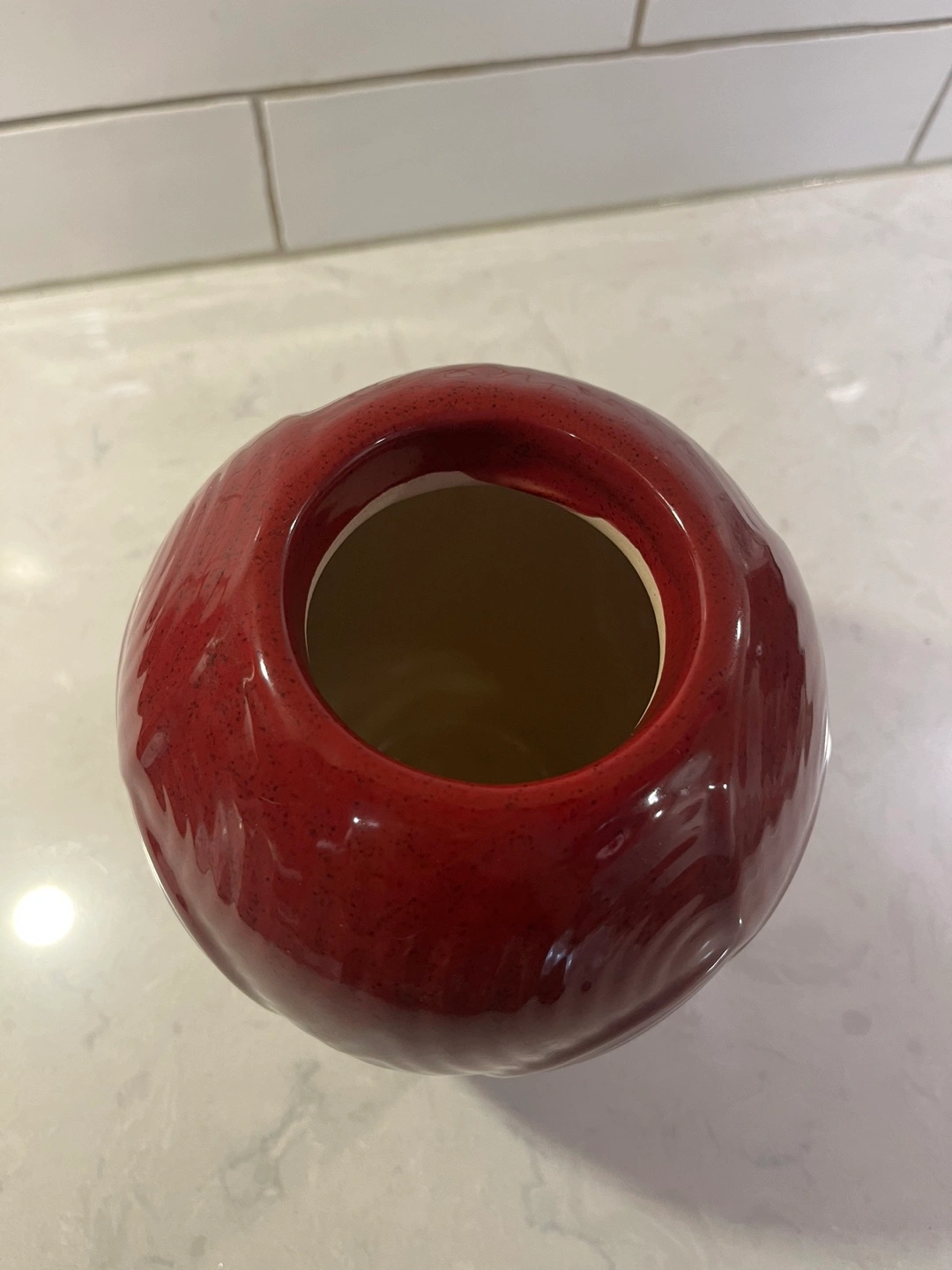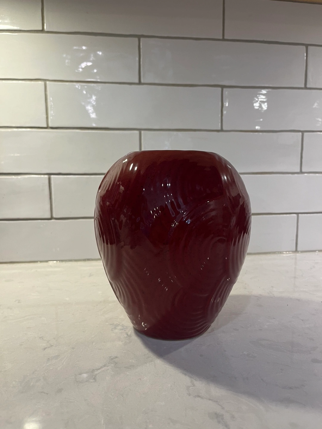 Large Red ceramic vase. Unique textured design. Excellent condition.