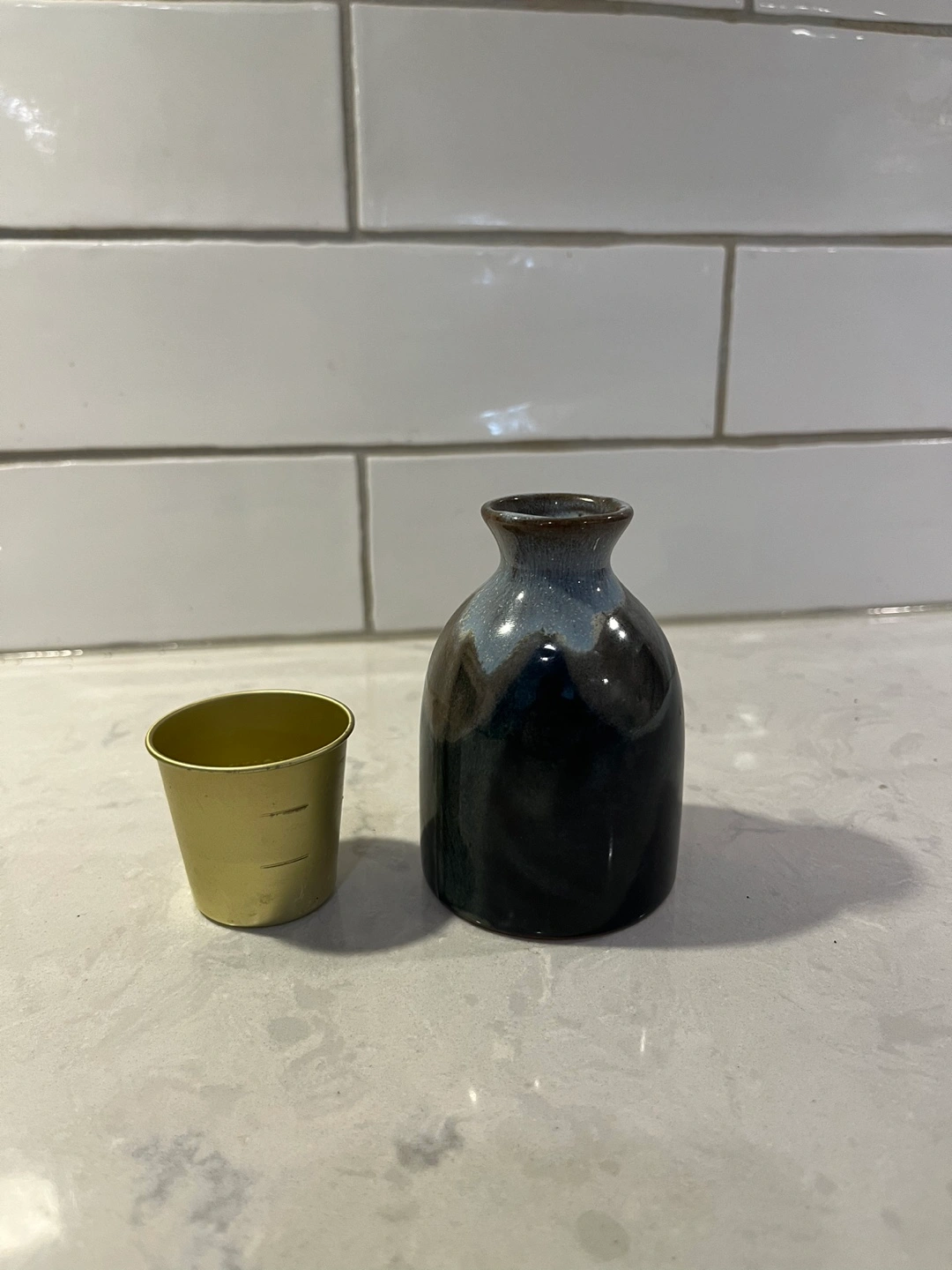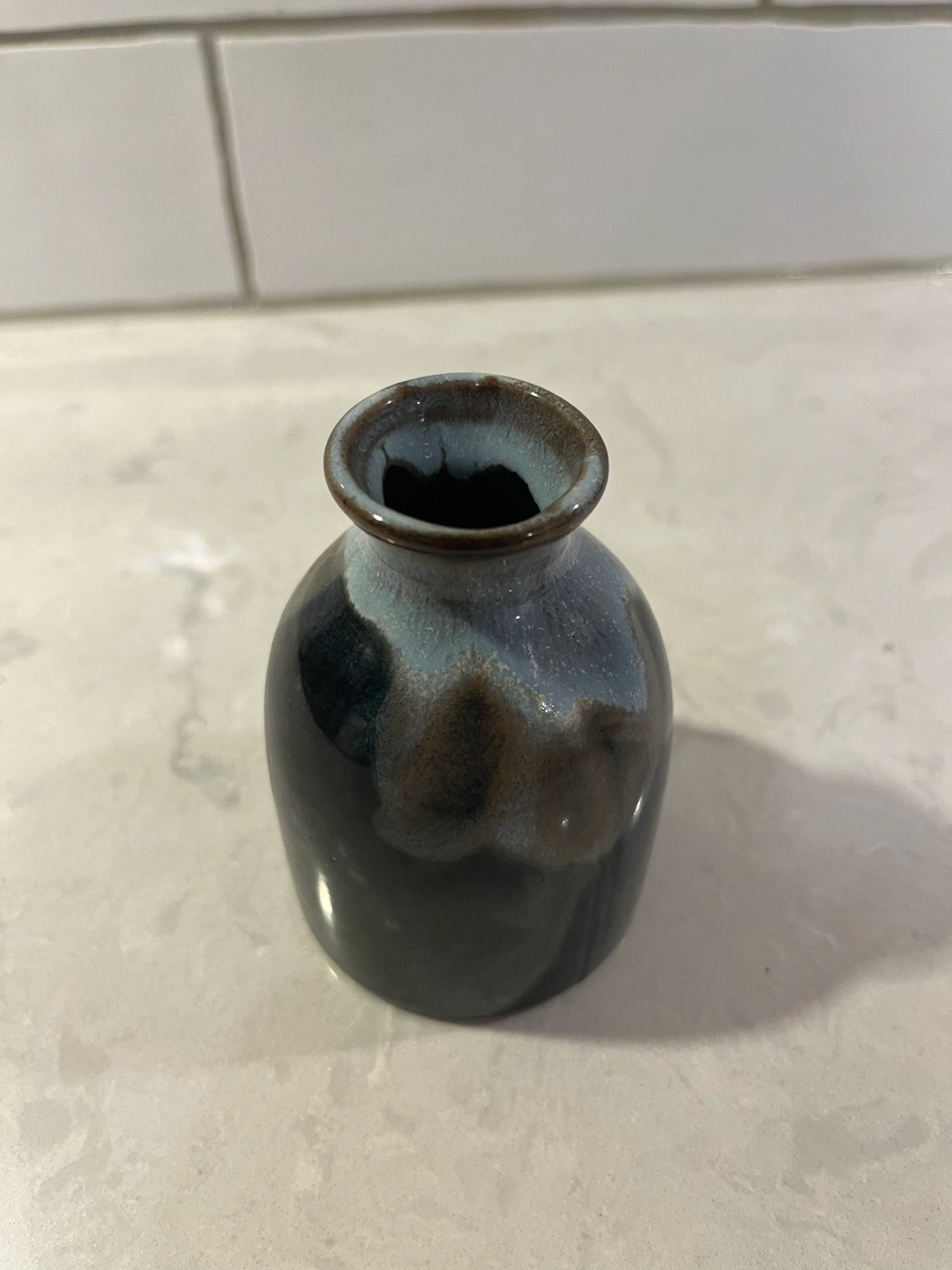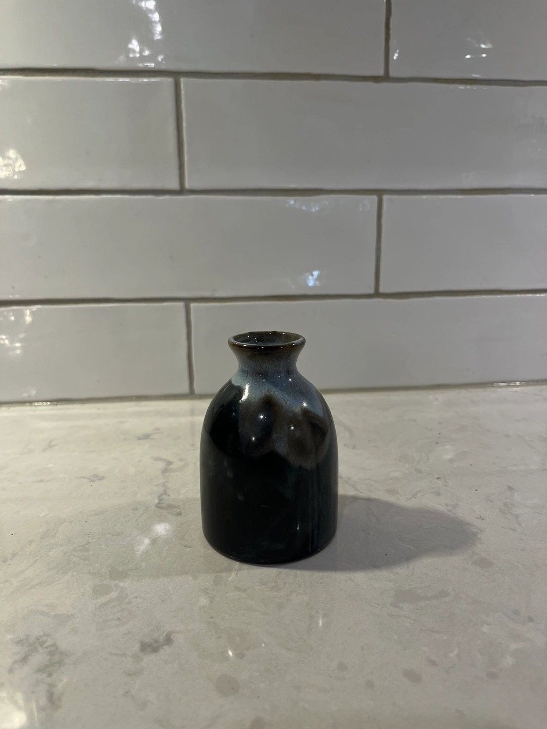 Miniature ceramic vase. Dark grey and black glaze. Small, round body. Perfect for small arrangements or decor. Price isn’t firm :)