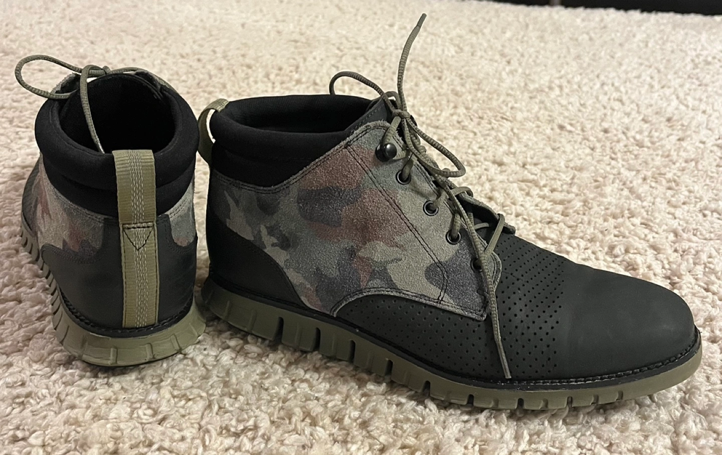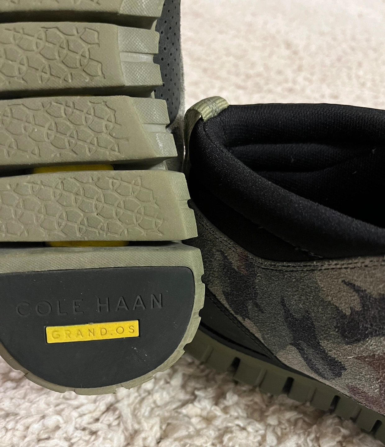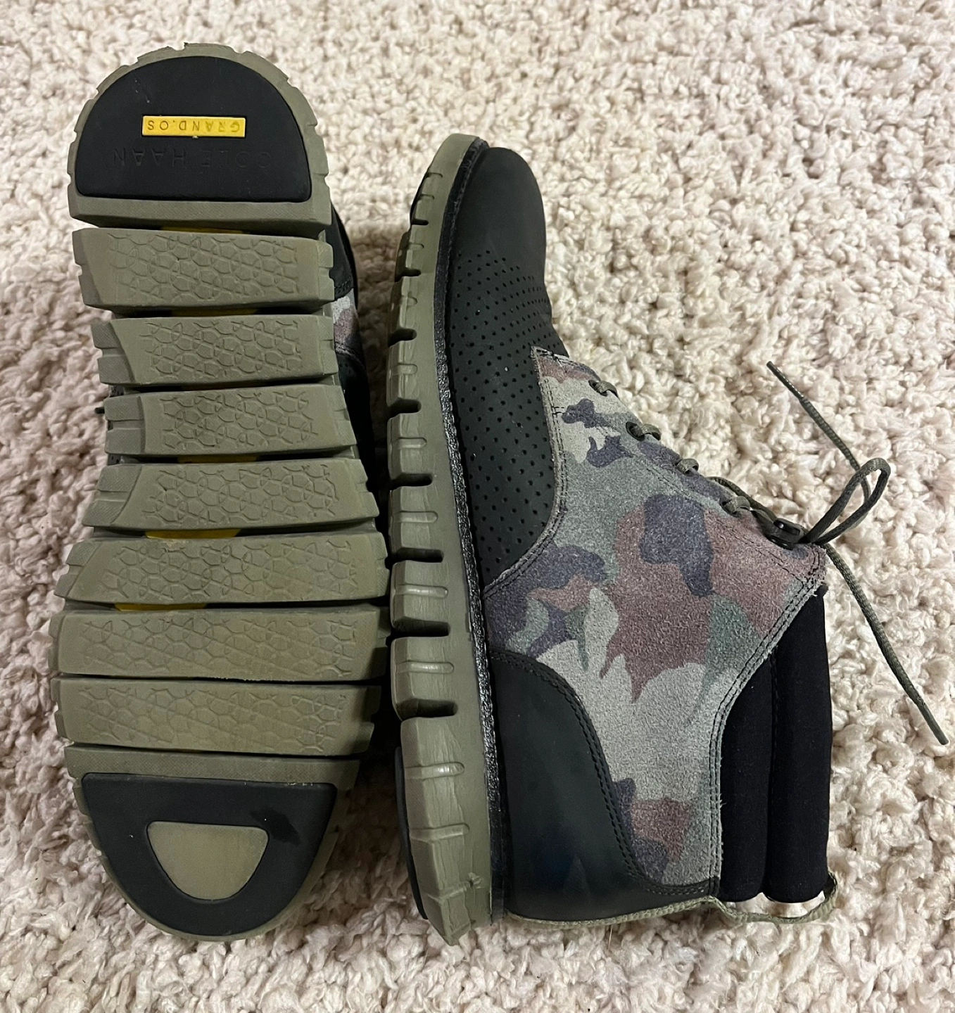 Men's Cole Haan Grand.OS Camouflage shoes Camouflage print suede and leather upper Lace-up closure Grand.OS cushioned sole Great for everyday wear Men Size 10