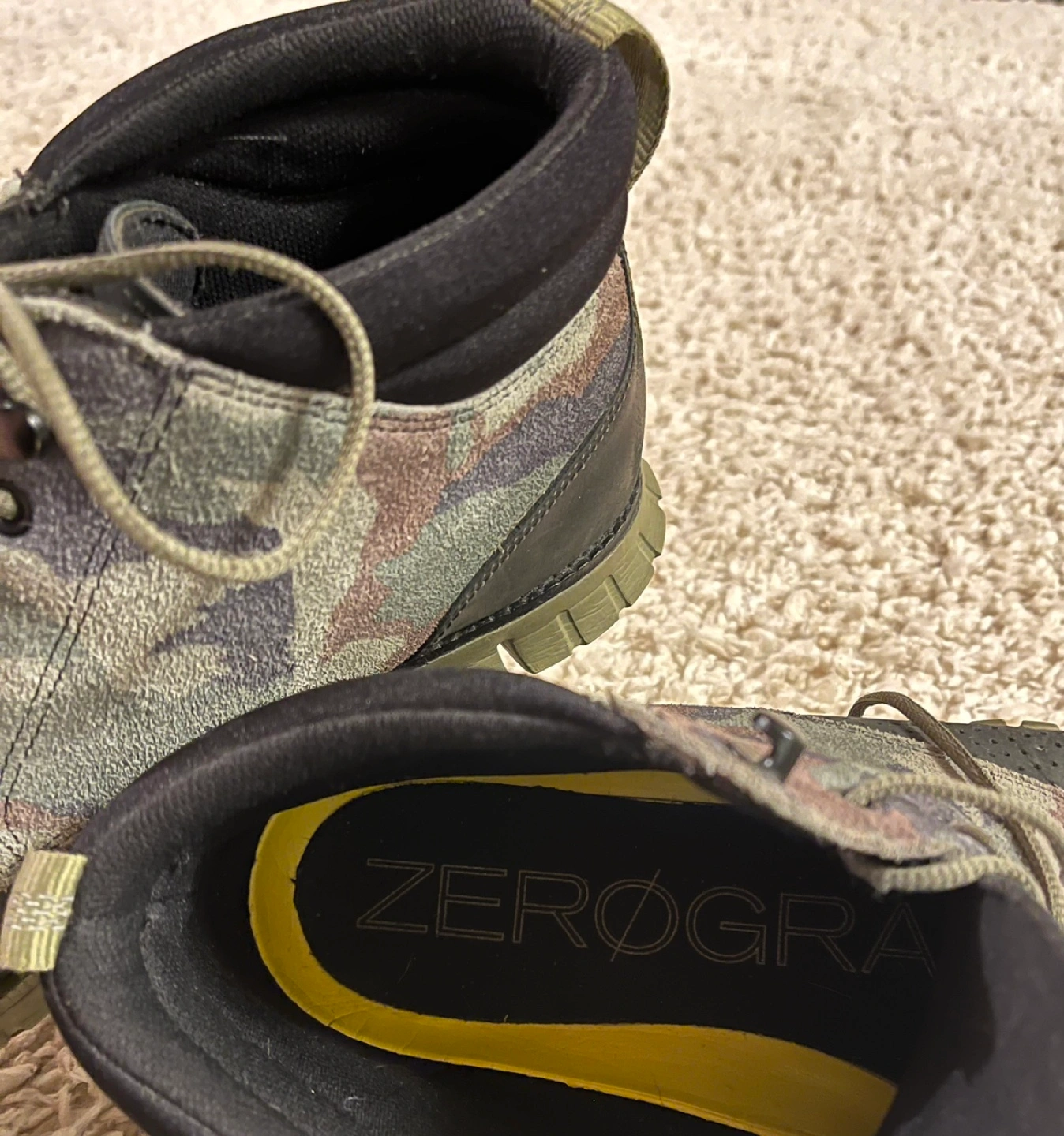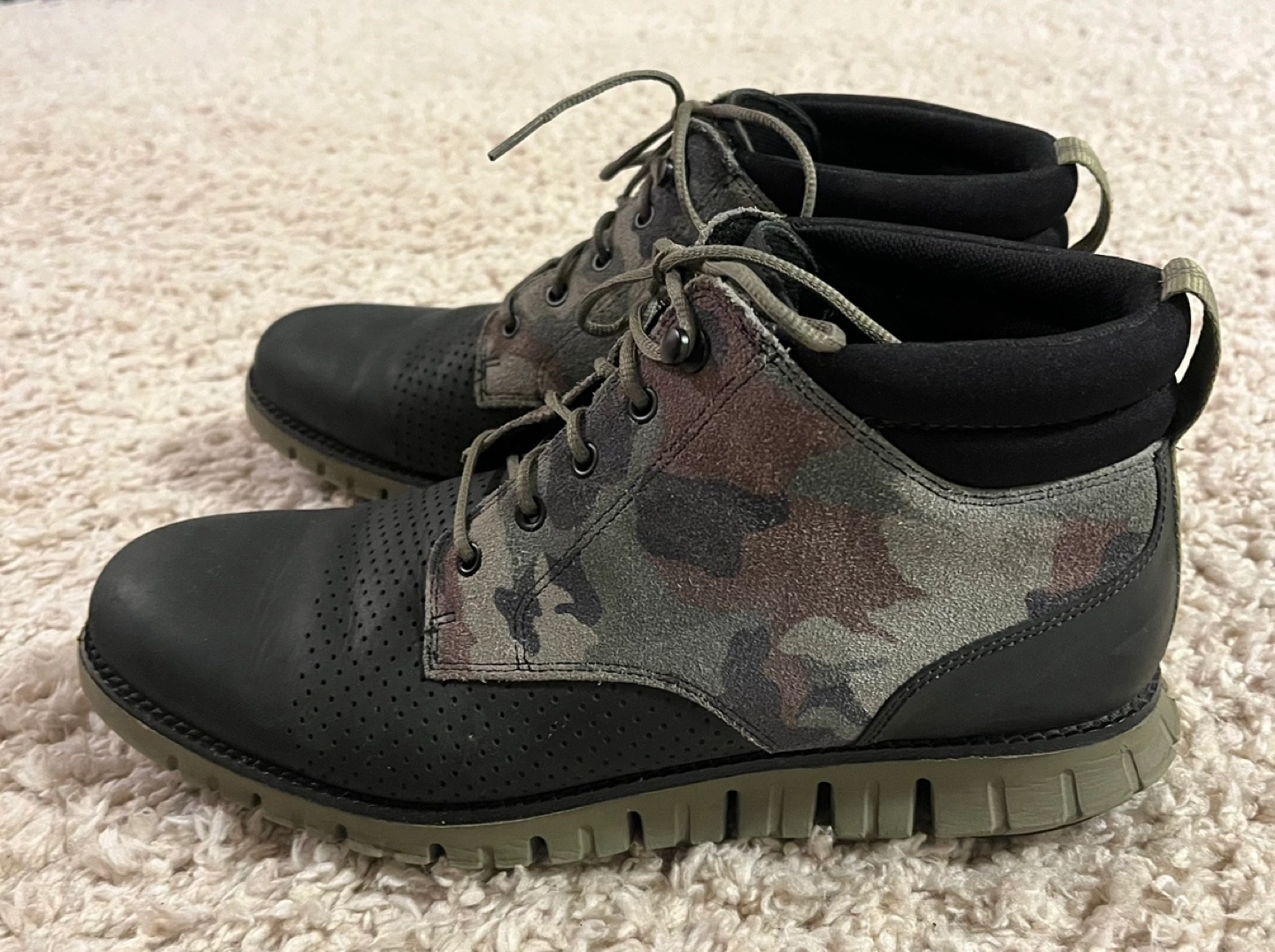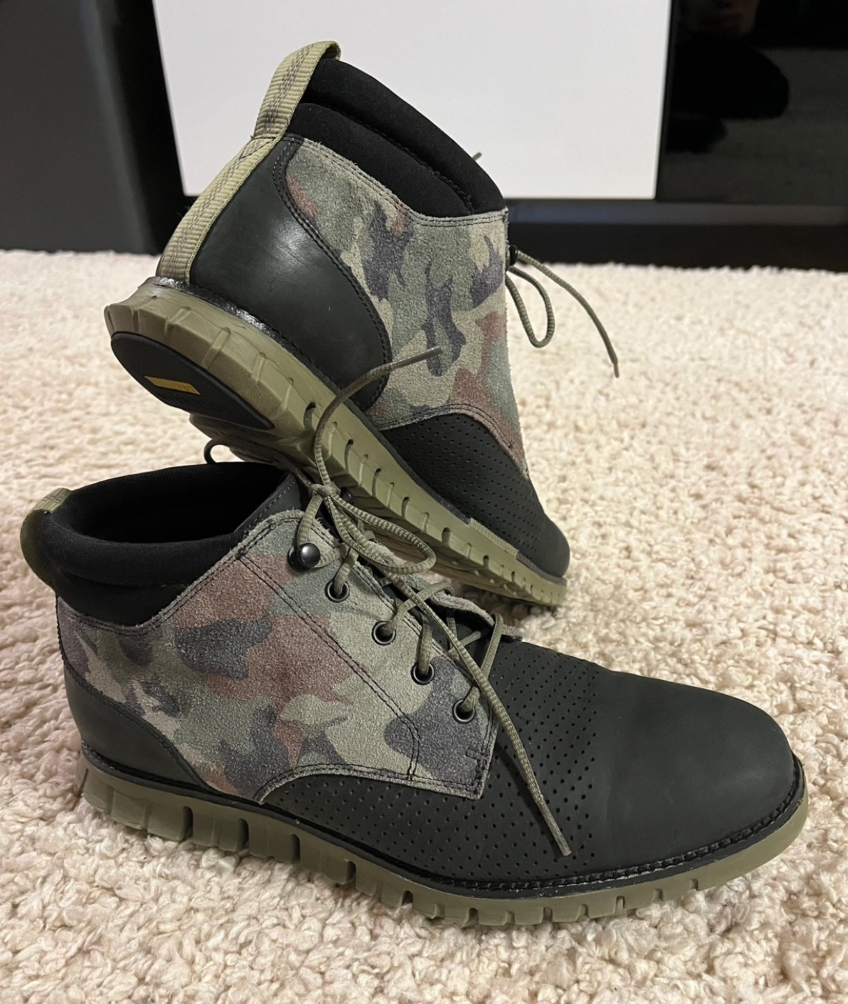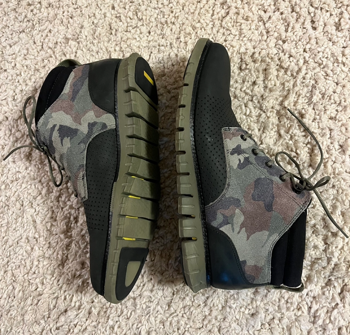 Men's Cole Haan Grand.OS Camouflage shoes Camouflage print suede and leather upper Lace-up closure Grand.OS cushioned sole Great for everyday wear Men Size 10
