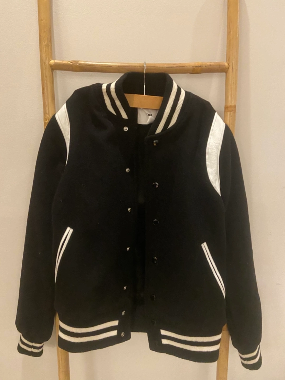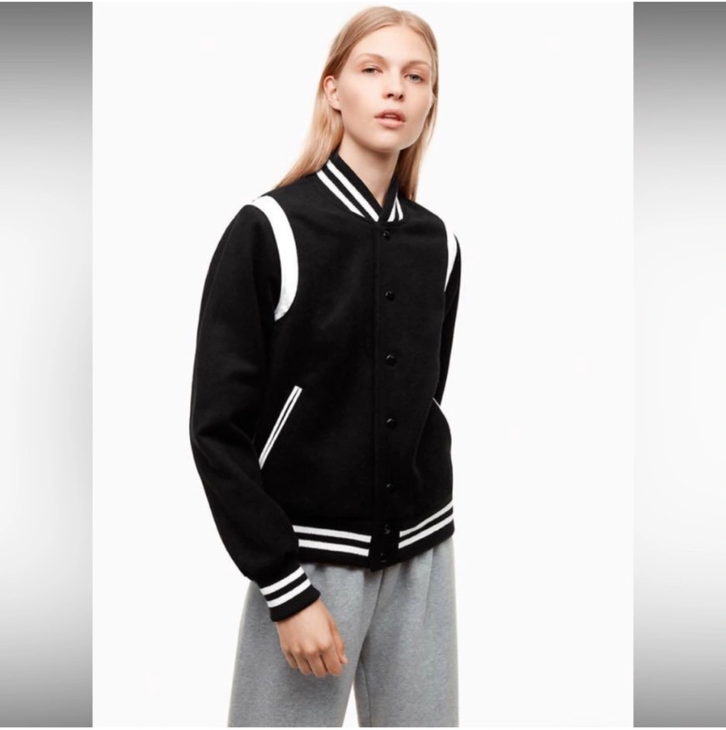Aritzia bomber jacket. Barely worn, in perfect condition. Snap button closure. Ribbed cuffs and hem. Classic style. xsmall Broadview and Danforth.