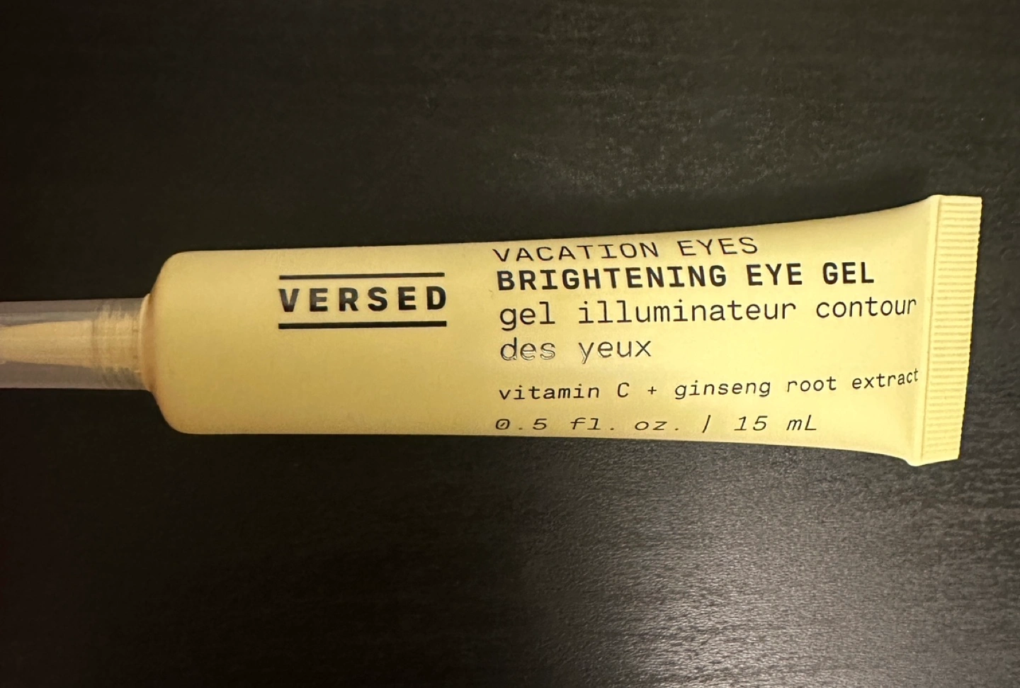 Brightening eye gel. Contains vitamin C and ginseng root extract. 15 mL tube.