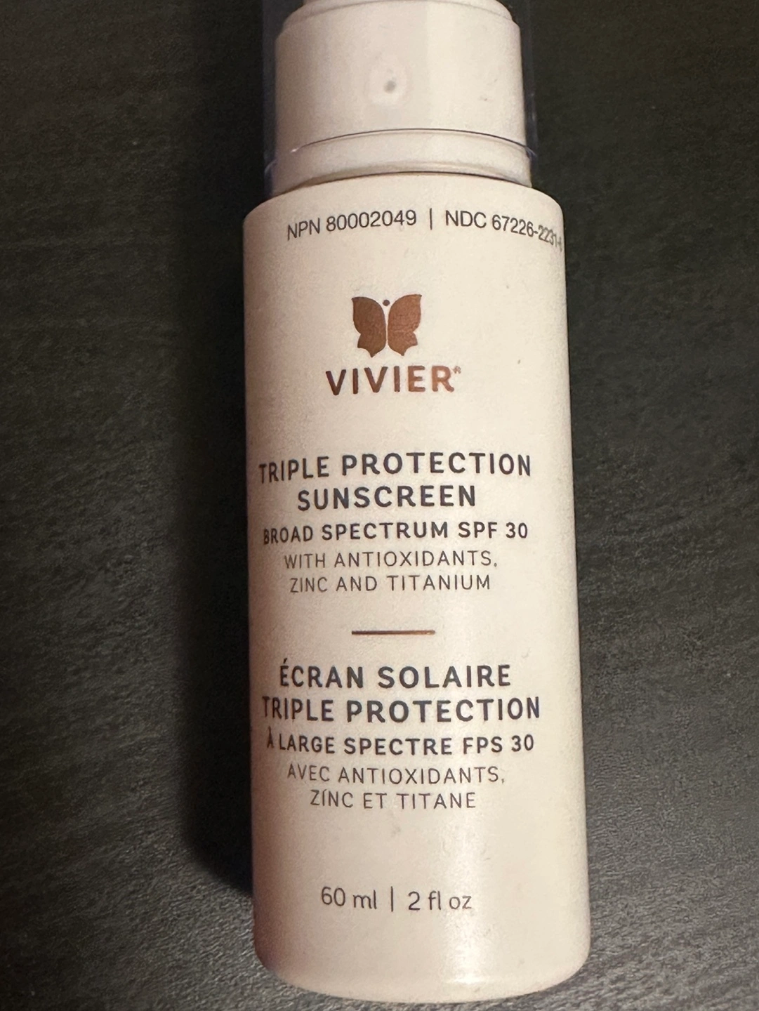 60ml sunscreen. Broad spectrum SPF 30. Contains antioxidants, zinc and titanium. (Retail value $60)