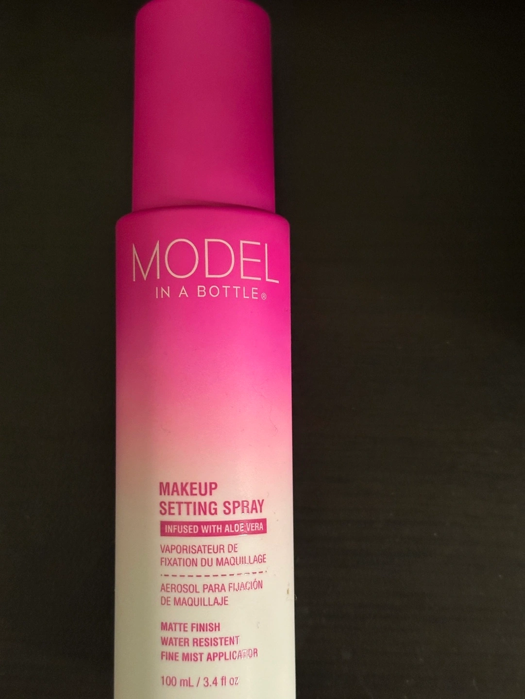 Makeup setting spray. Infused with aloe vera. Matte finish, water resistant. Fine mist applicator. 100 mL.