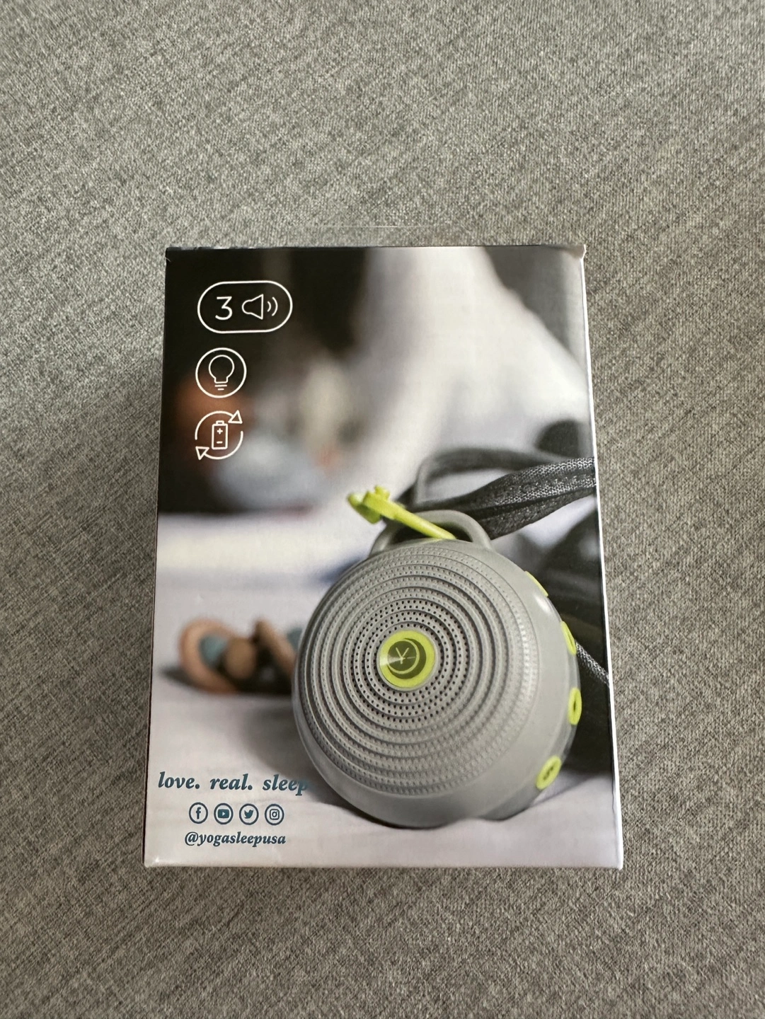 Excellent condition. In box. EFFECTIVELY MASKS NOISE: Beloved by generations since 1962, Yogasleep by Marpac is the trusted leader in white noise machines, and created our signature sound – the soothing ambient sounds of rushing air. That sound that’s helped millions experience better sleep for generations is now available in this light and portable design for babies. The Hushh effectively cancels out noises that may disturb or distract for improved sleep and soothing. 3 SOOTHING SOUNDS & NIGHT LIGHT: Choose from bright white noise, deep white noise, or gentle surf, then set your volume - anywhere from whisper-quiet to impressively robust. Hushh lets you take control of the sound environment, excellently masking background noise and allowing for better sleep and effective soothing for kids and babies. A gentle amber LED Night light provides just enough light to see by without causing wakefulness for parent or baby. Care & Cleaning: Spot or Wipe Clean The Hushh effectively masks noises that may disturb or distract for improved sleep for adults, babies, and children. Choose from 3 soothing sounds: bright white noise, deep white noise, or gentle surf, then set the volume; features a child lock and gentle amber LED nightlight. At just 3.5" in diameter and 3.8 ounces, Hushh fits easily in a diaper bag or backpack and comes with a baby-safe clip that attaches to virtually anything. USB rechargeable (USB cable included) and operates all night long on a single charge.