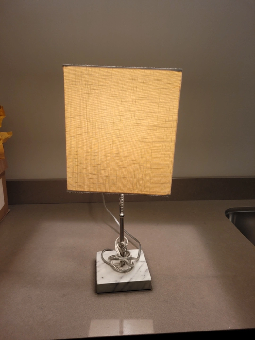 Modern Table Lamp with faux marble base, the lampshade can be easily changed to suit your decor, $10 firm.