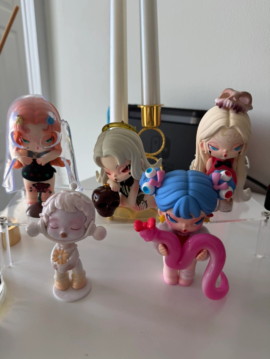 Dodo nami doomsday series comes with cards they are $15 each Replica Skullpanda warmth series no card is $5