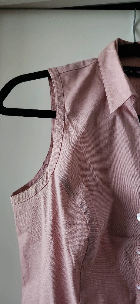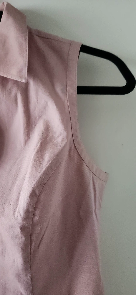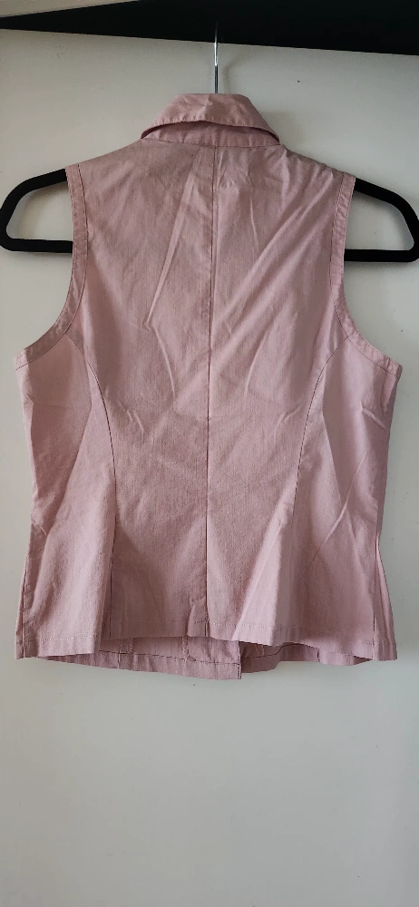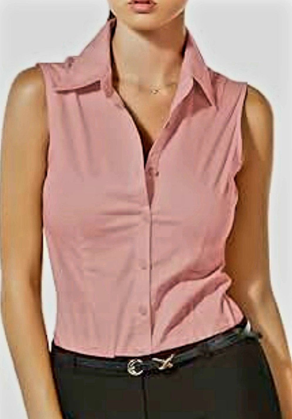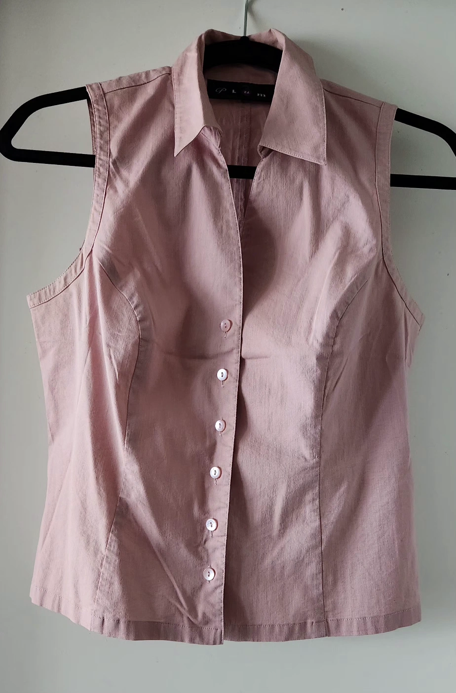 Plum vintage dusty rose sleeveless button-up shirt. Stretchy and comfortable collared top. Made of 60% cotton, 20% nylon, 15% polyester and 5% spandex . Women's size small. Like nee condition with no rips or stains.