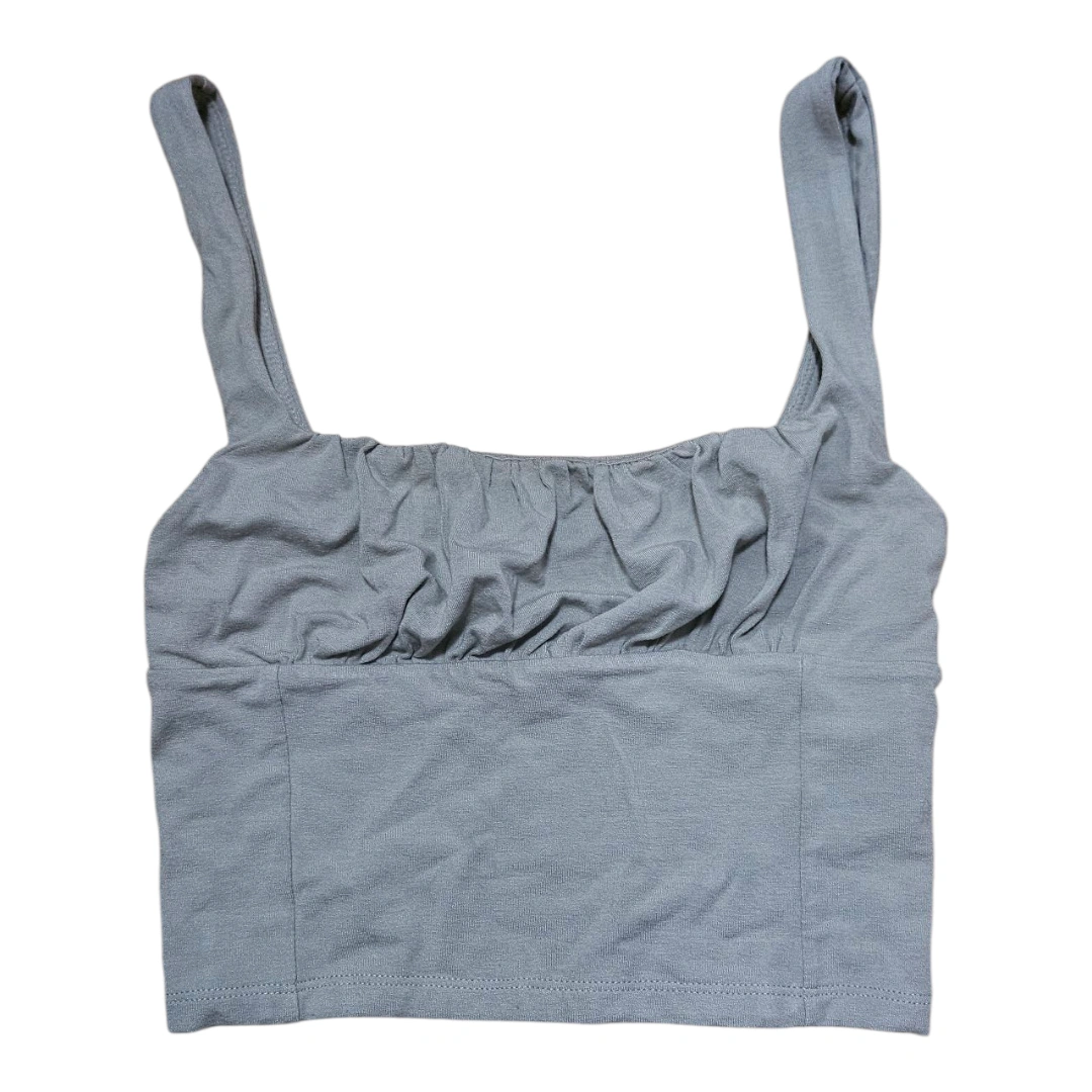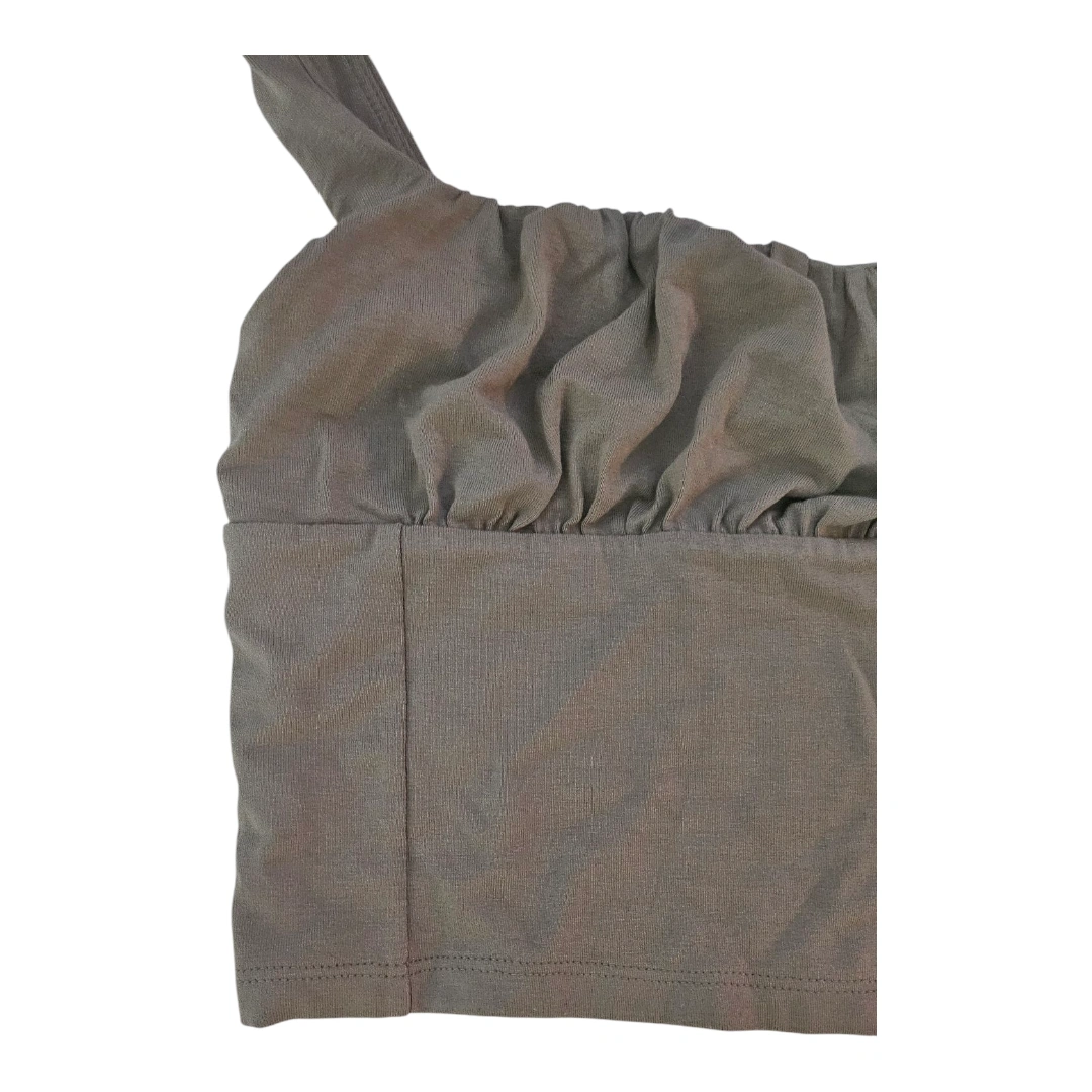 Lightly used but no flaws. Too small for me. The last photo shows a better vision of the colour, on the green side. 96% rayon, 4% elastane