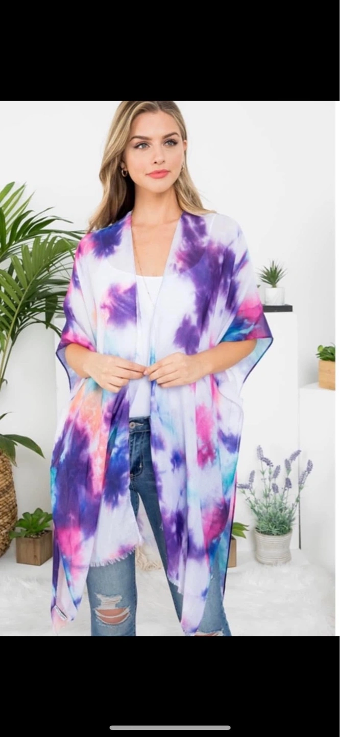 Vacation or the Beach ๐๏ธ Gorgeous Lightweight Kimono-Style Cardigans. Short sleeves. Open front. Tie-dye prints, Fringed hem. Various colours available. Www.lillyroseapparel.ca