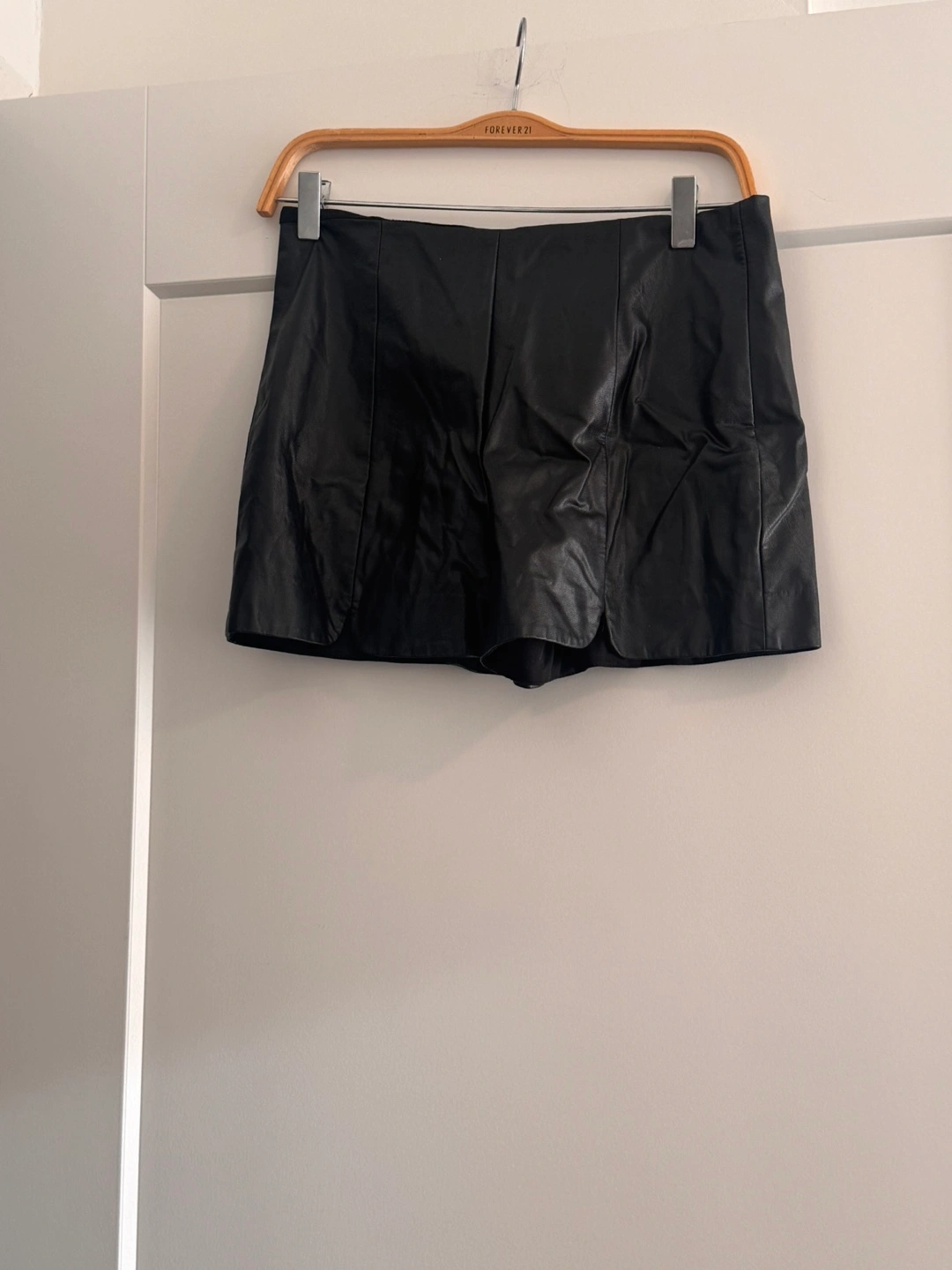 Women's black faux leather shorts. High-waisted, classic style. Good condition.