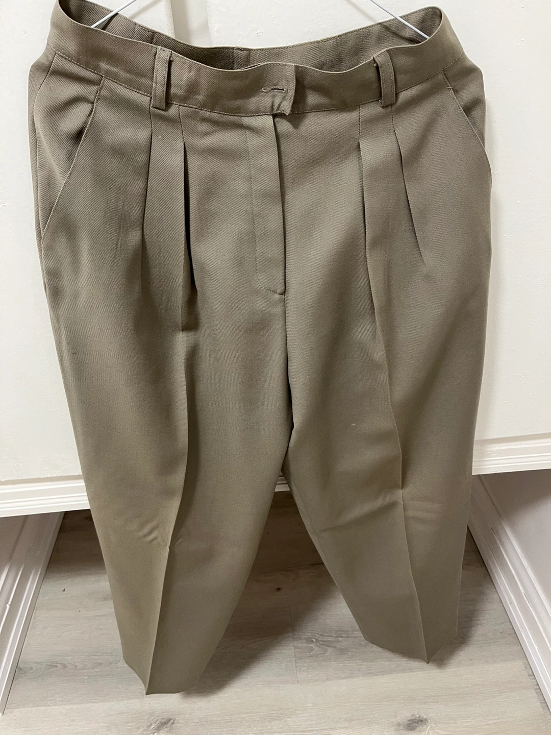12P petite women's trousers. 100% wool. Made in Canada. Pleated front.