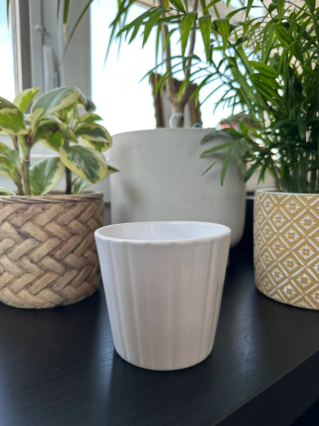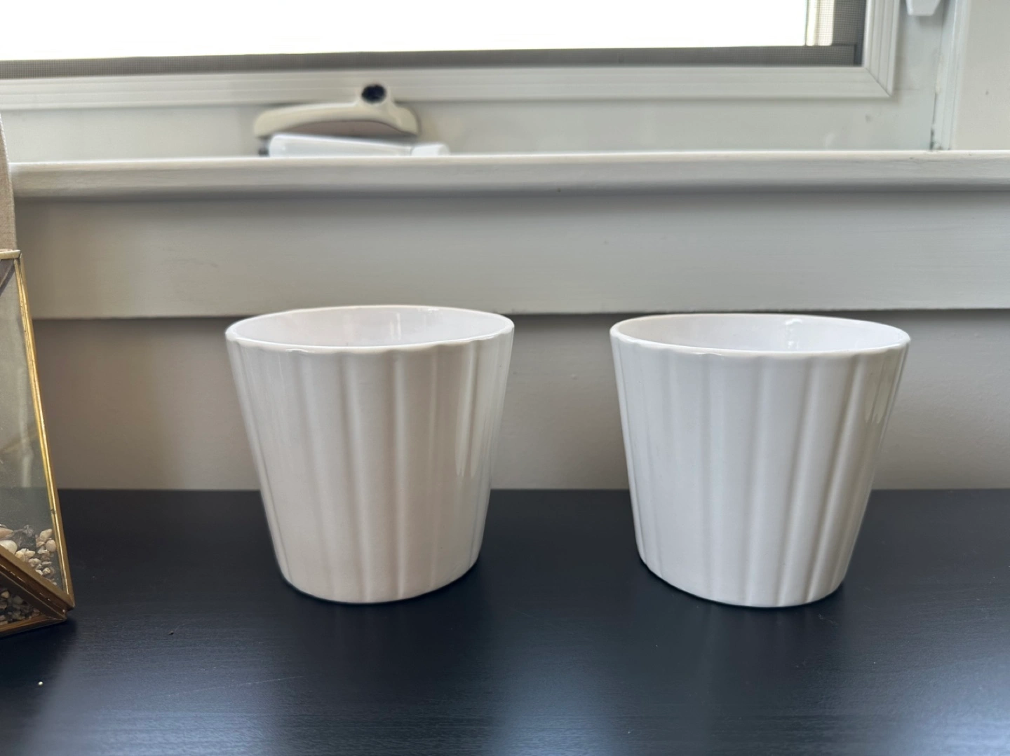 Two small white ceramic pots. Perfect for succulents or small plants. Great condition. Approximately 4x4 inches.