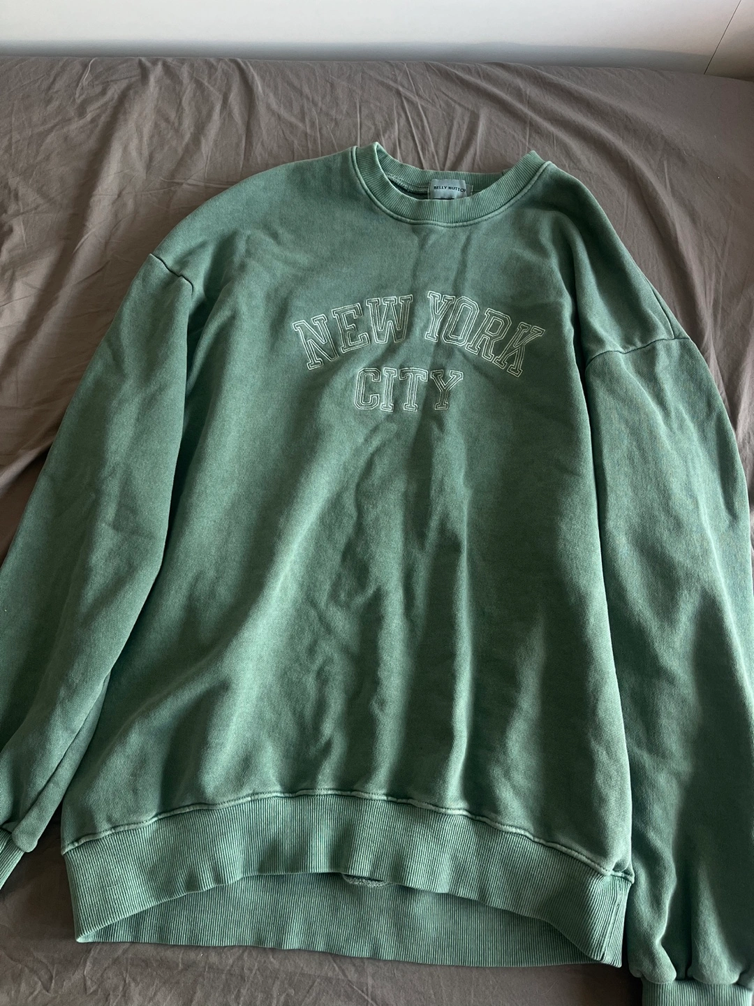 Oversized crewneck sweatshirt. Features a faded green colour and embroidered New York City graphic. Relaxed fit.