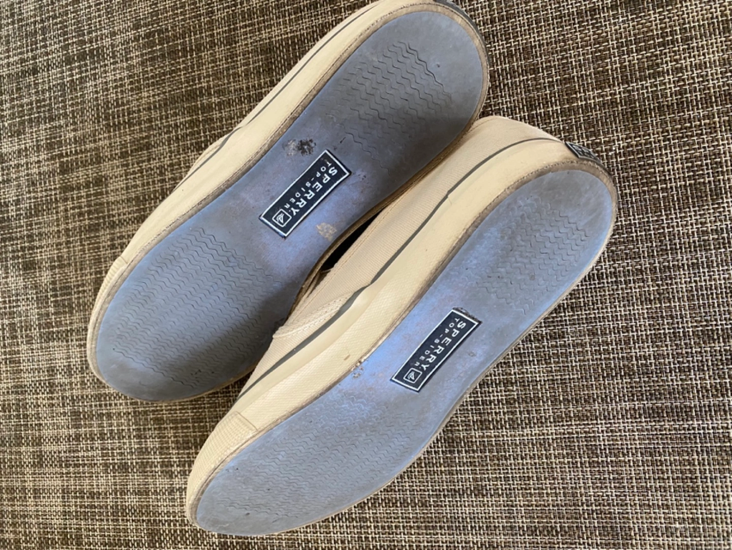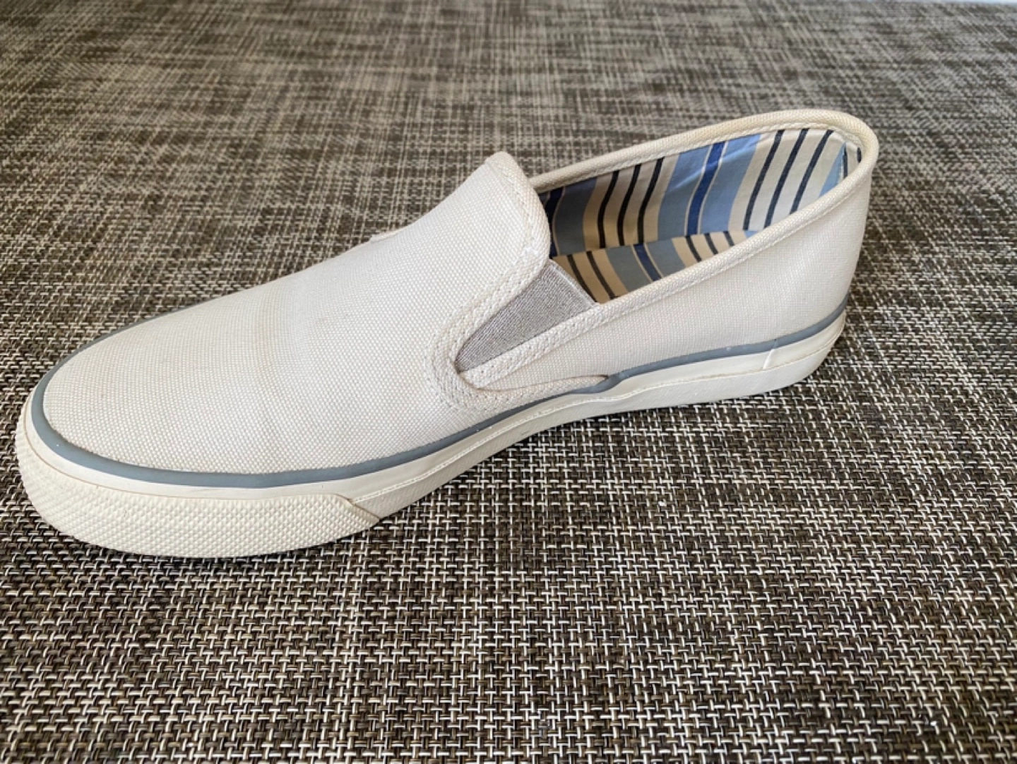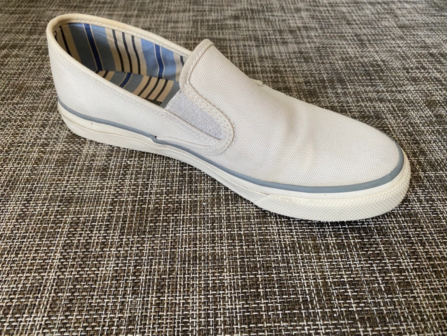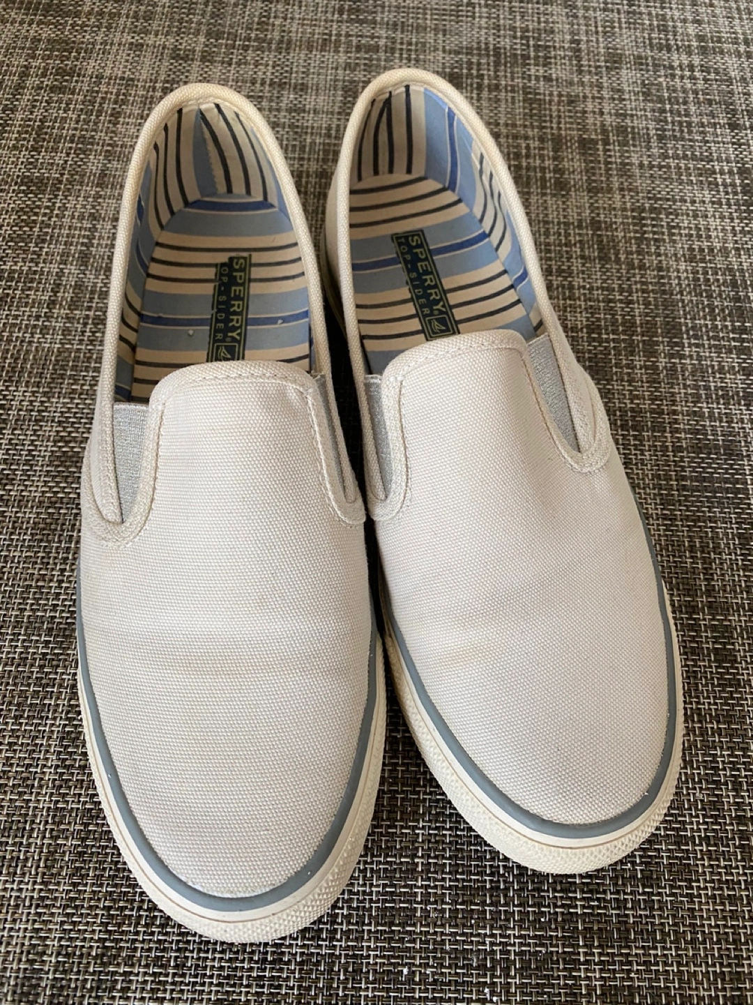 Women's slip-on canvas sneakers. Off-white colour. Sperry Top-Sider branding. Lightly used.