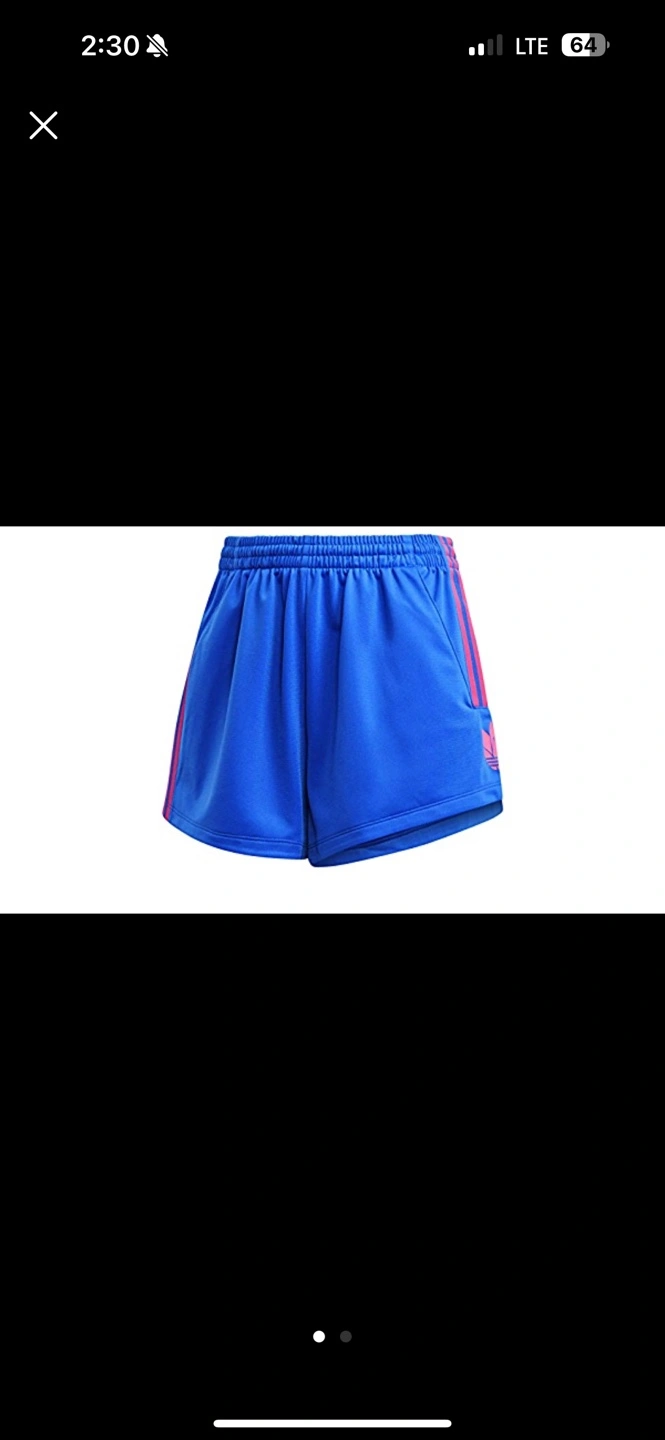 Women's athletic shorts. Bright blue colour. Pink side stripes. Elastic waistband. Perfect for workouts or casual wear.