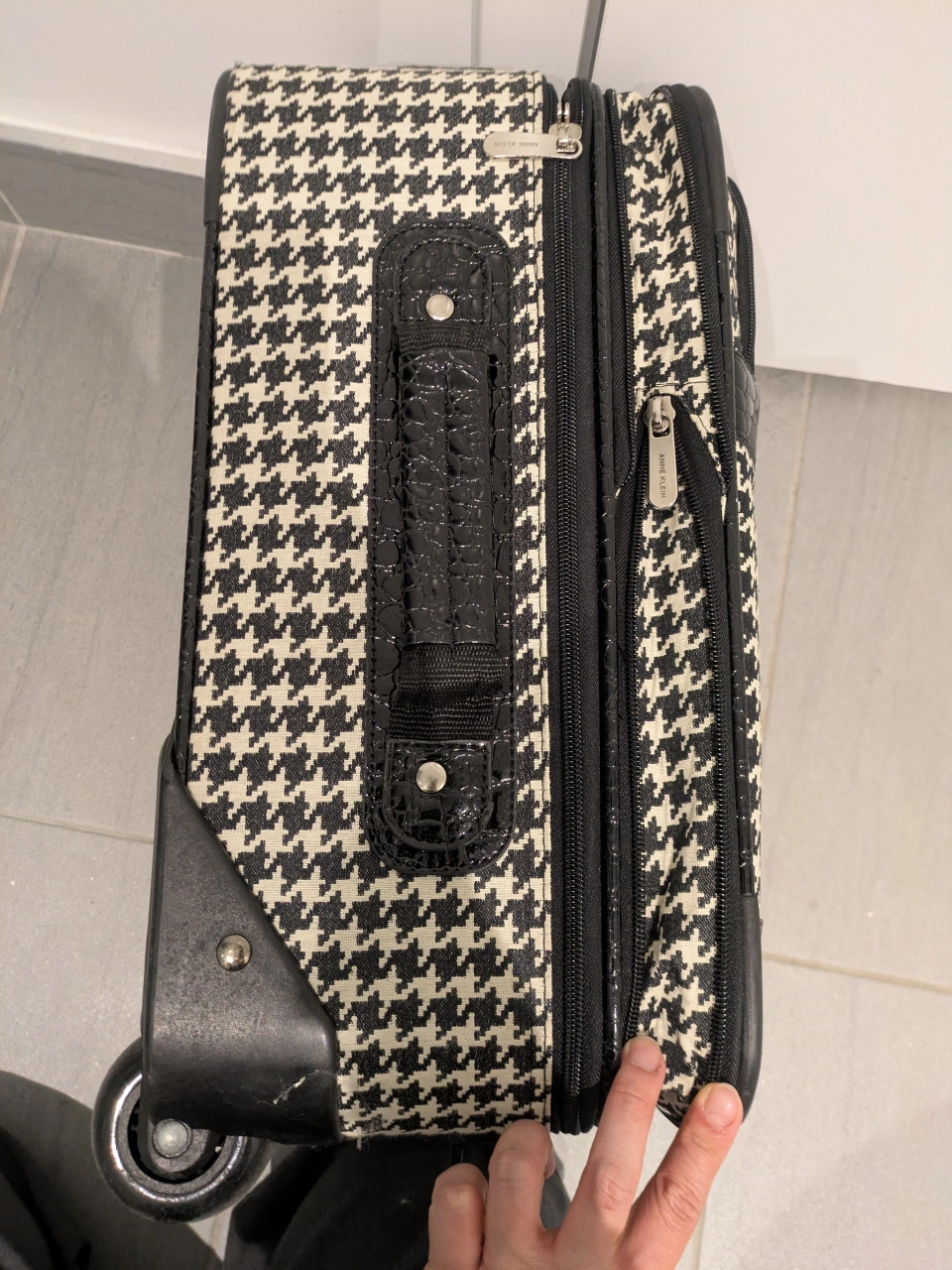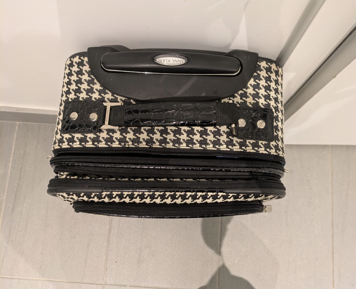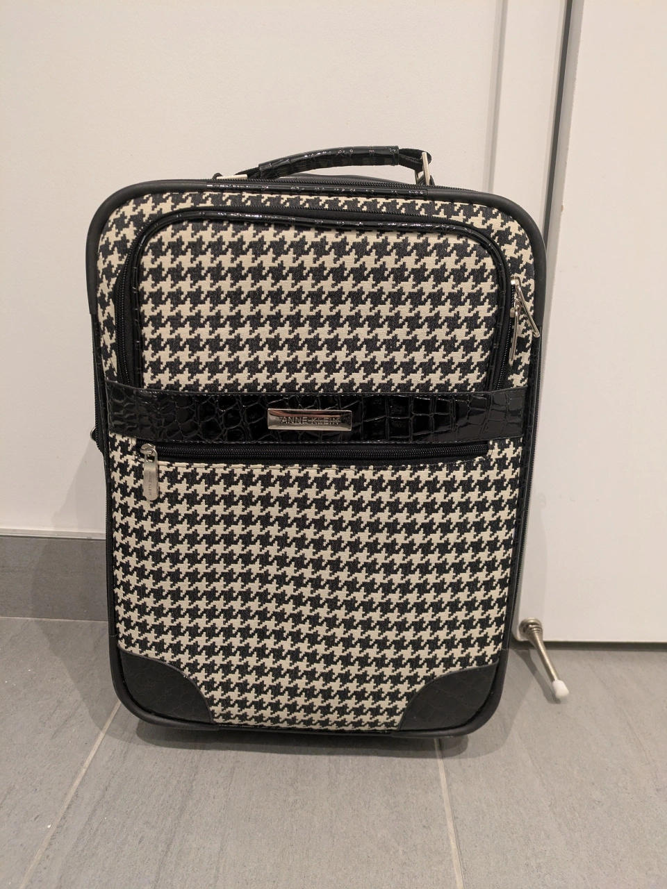 Brand new - used only ONCE, in perfect condition. Carry-on sized rolling suitcase with expandable cloth shell. Black and white houndstooth pattern. Features a faux crocodile-skin handle and multiple compartments. ✨MOVING SALE - check out my other listings ✨