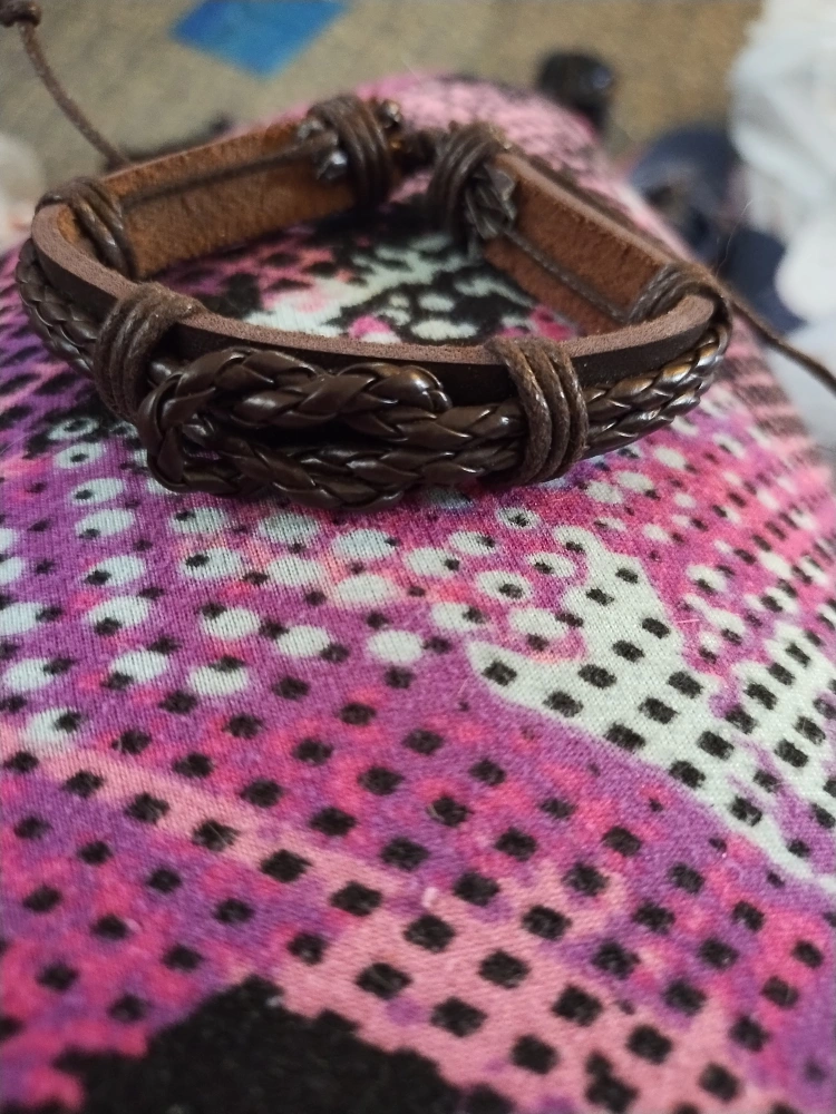 brown leather bracelet. Braided leather design. Adjustable closure. elegant and stylish.