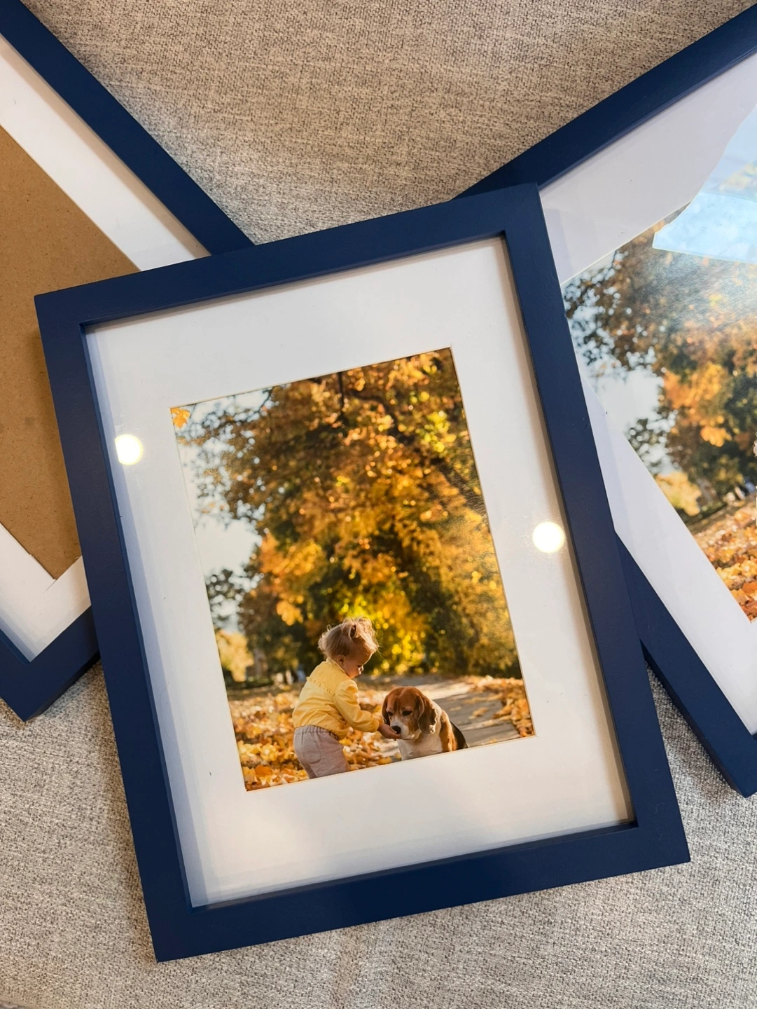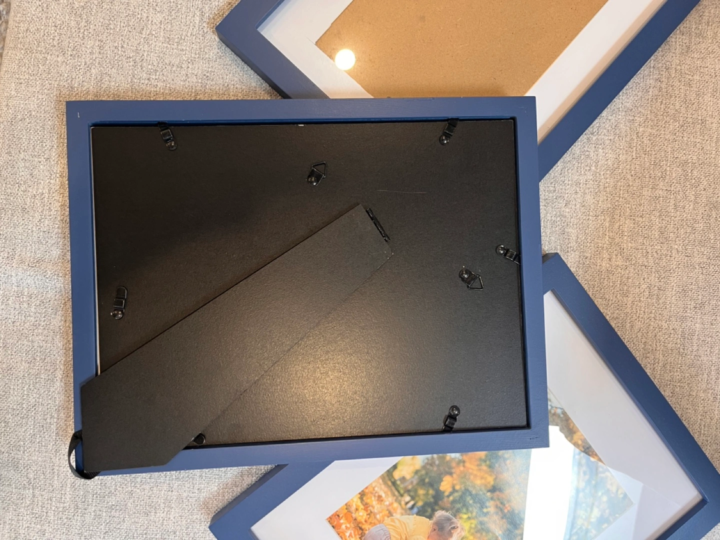 Set of three navy blue picture frames. Simple design. Perfect for displaying photos. Ready to hang or stand. Never used